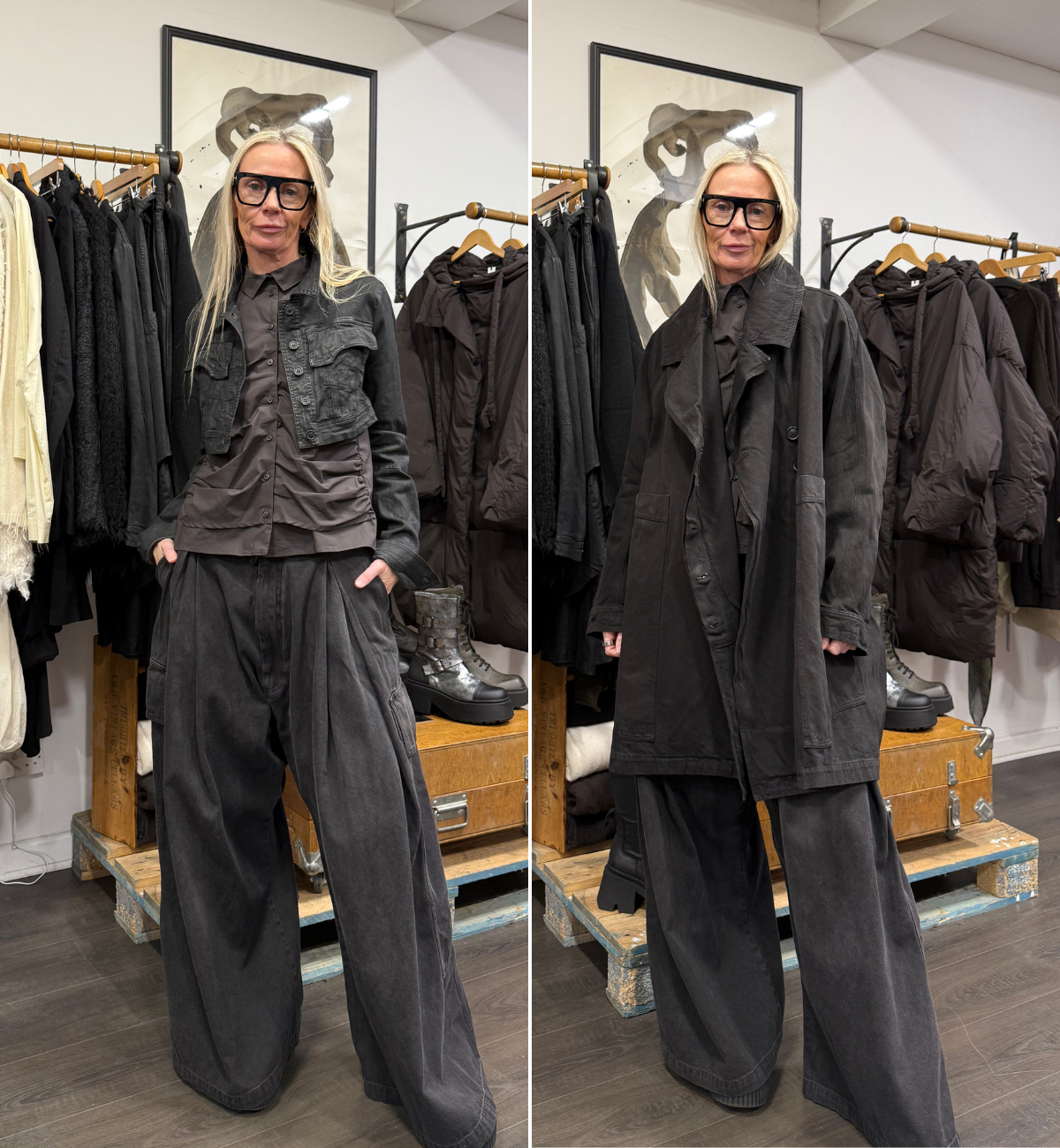 OUTFIT 2 & 3 - LIESA SHOWS OFF THE NEW IN JACKETS TO THE MAINLINE COLLECTION.