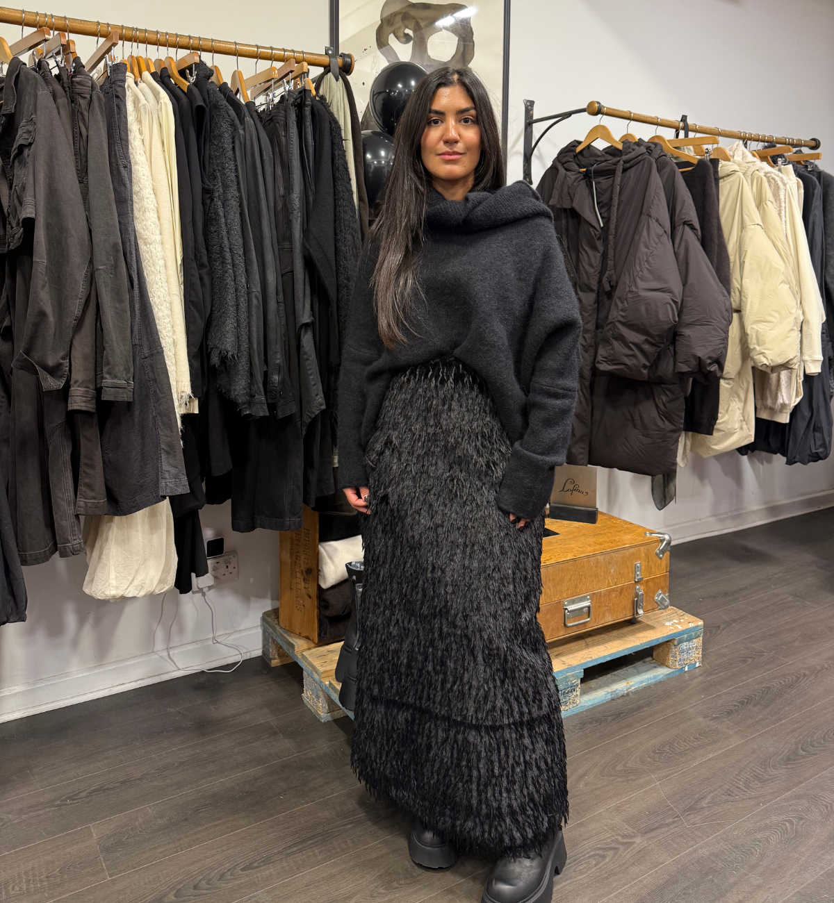 OUTFIT 4 - SHOWING OFF A PARTYWEAR INSPIRED OUTFIT, YAS SHOWCASES THE LA VACA LOCA FEATHERED SKIRT. THE PERFECT PIECE FOR YOUR PARTY WARDROBE.