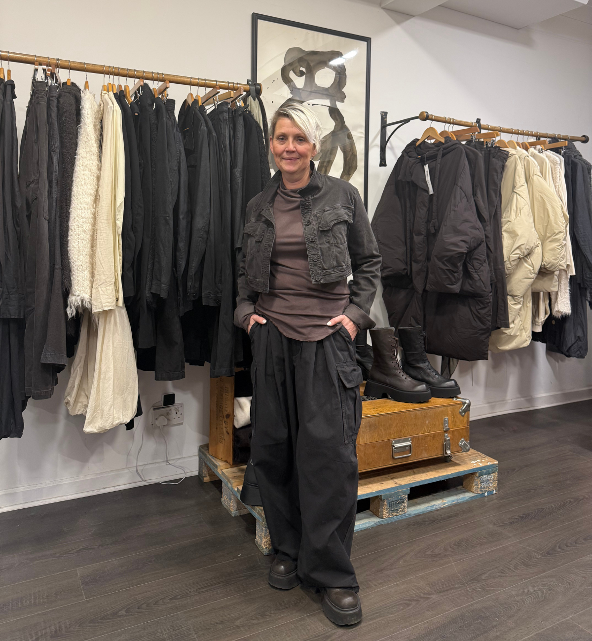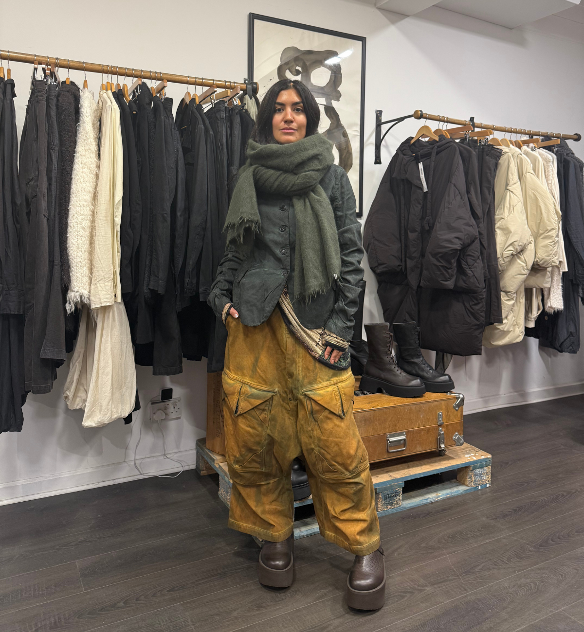 OUTFIT 1 - KIRSTIE MASHES UP TONAL PIECES FROM RUNDHOLZ MAINLINE, PAS DE CALAIS AND SORT AARHUS FOR HER FRIST LOOK.