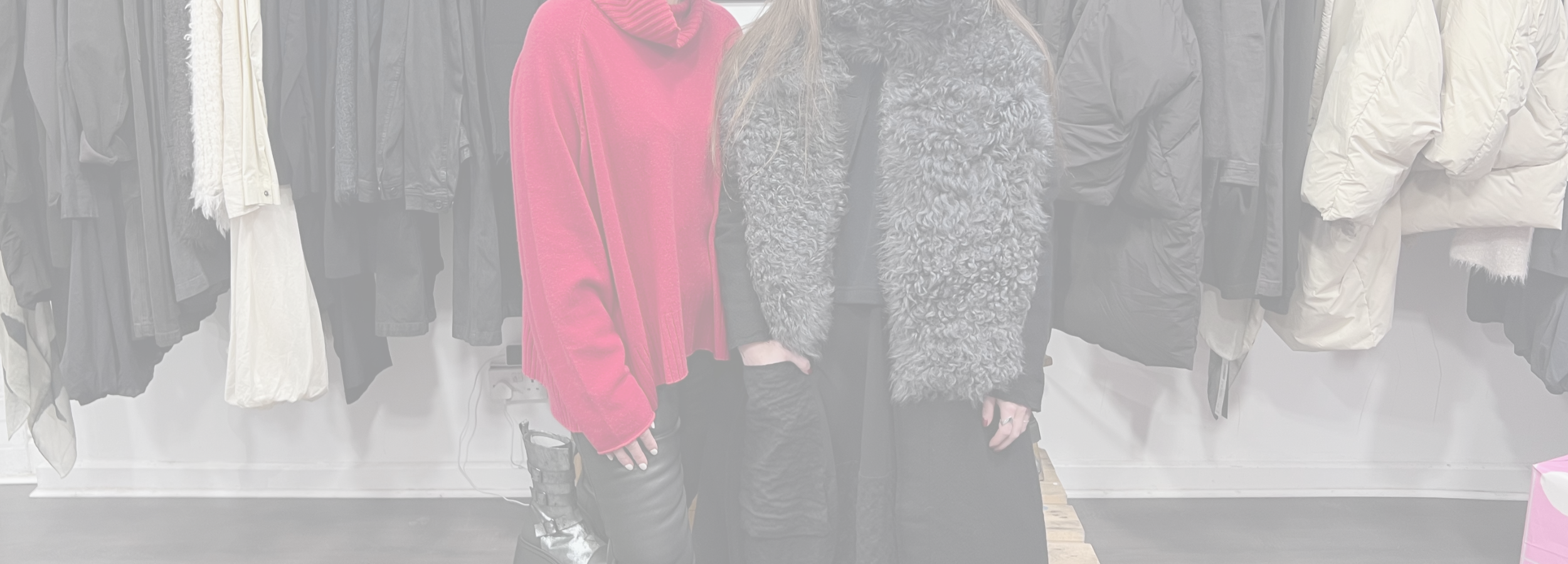 OUTFIT 2 - PAIRING THE HOUSE OF VALERIE EXCLUSIVE RACOON CARDIGAN WITH A BLACK LABEL PULLOVER, KIRSTIE FINISHES THE OUTFIT OFF WITH LEATHER LEGGINGS AND SORT AARHUS LEATHER BOOTS.