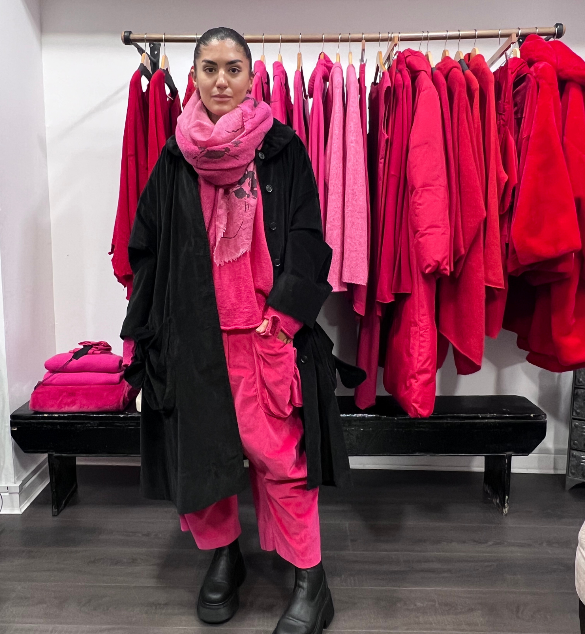 OUTFIT 1 - YAS STYLES THE LOTUS COLOURWAY, INJECTING SOME TEXTURE WITH THE VELVET AND BOILED WOOL PIECES. GROUNDING THE LOOK WITH A LONGLINE VELVET COAT IN BLACK. FINISHED WITH THE FAVOURITE SORT AARHUS BOOTS OF THE SEASON.