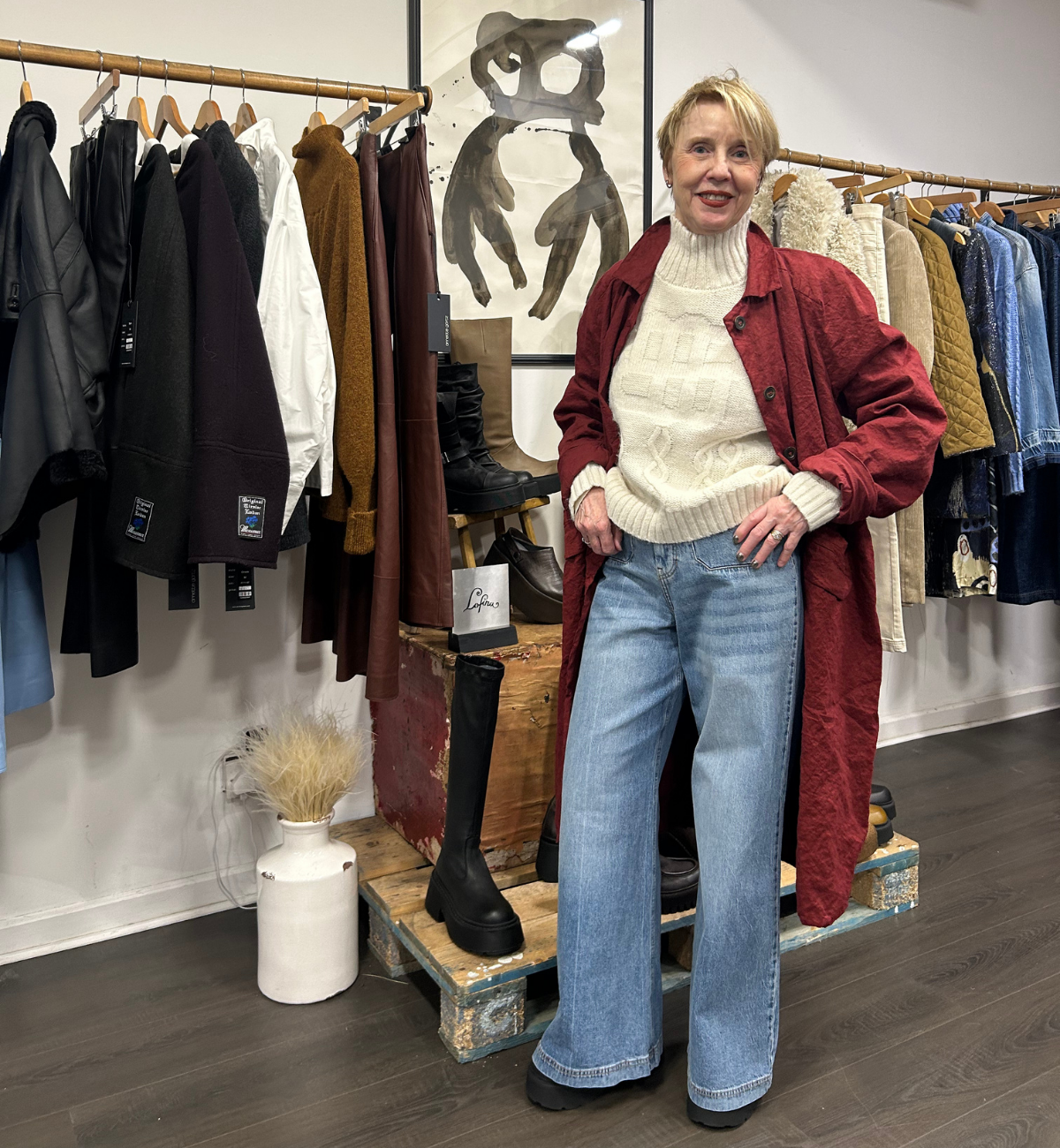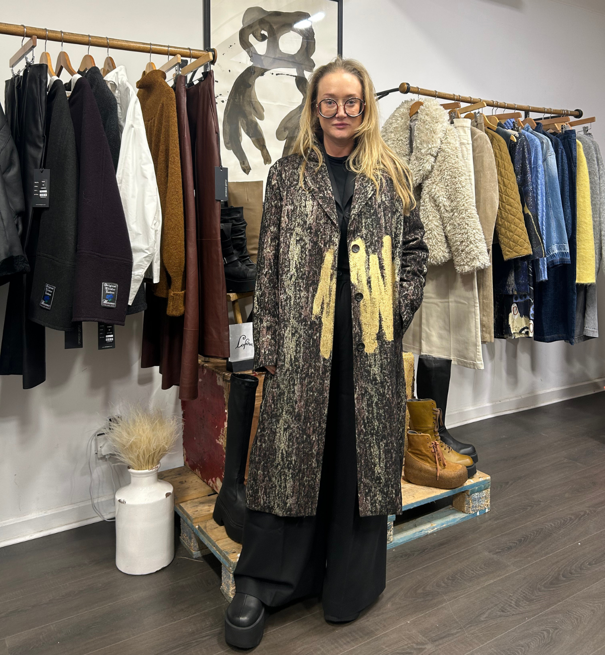 OUTFIT 2 : STYLING THE LOGAN BERRY PULLOVER FROM MUNTHE WITH THE MAXIMA COAT FROM AEQUAMENTE.
