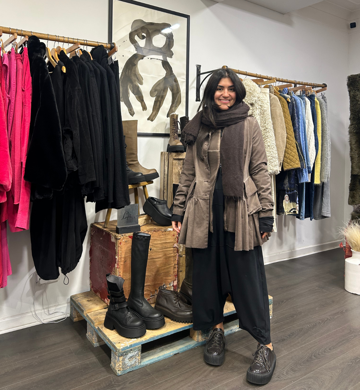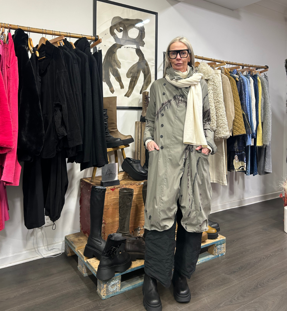 OUTFIT 2 : LIESA STYLES THE OVERSIZED AEQUAMENTE COAT WITH THE CO-ORDINATING HANNOH WESSEL SUIT.