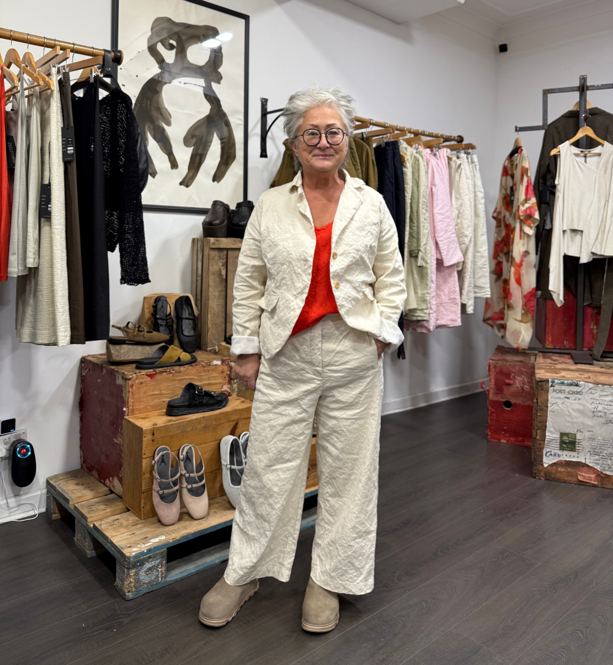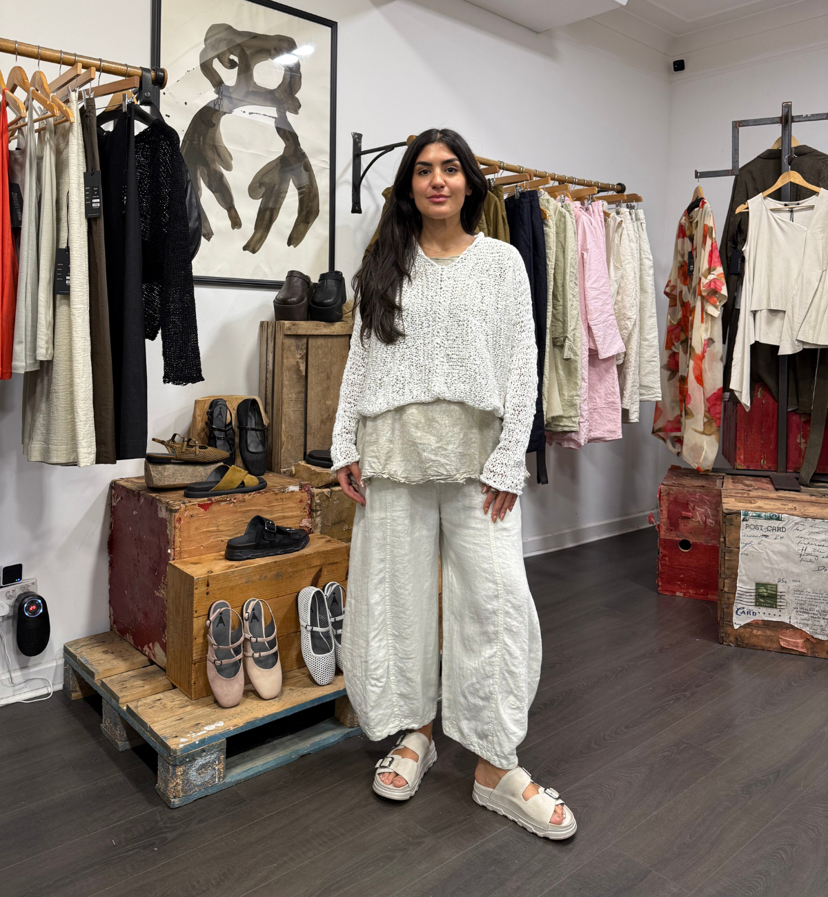 OUTFIT 3 - Liesa showcases the one-off style trouser from BLACK LABEL in the classic linen fabric.