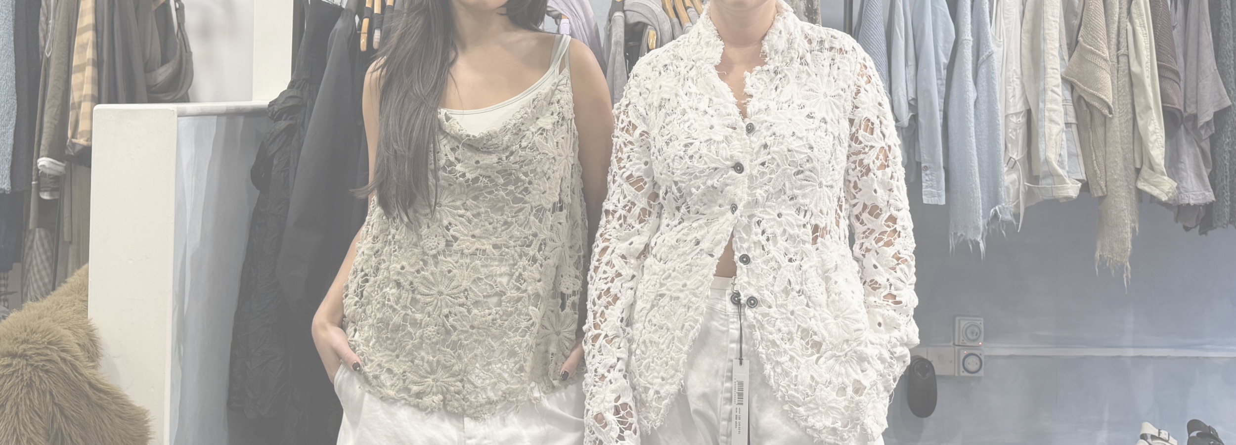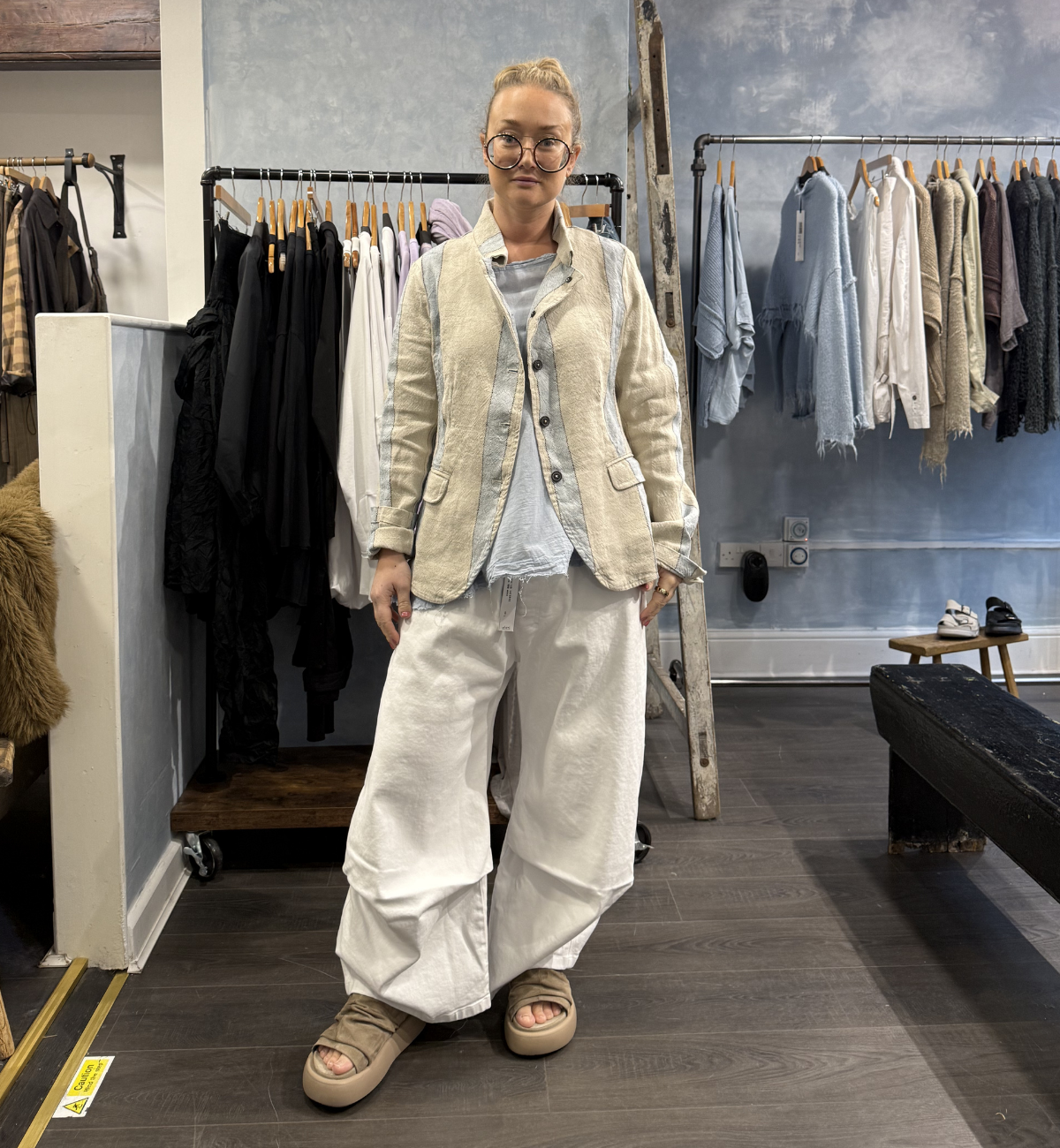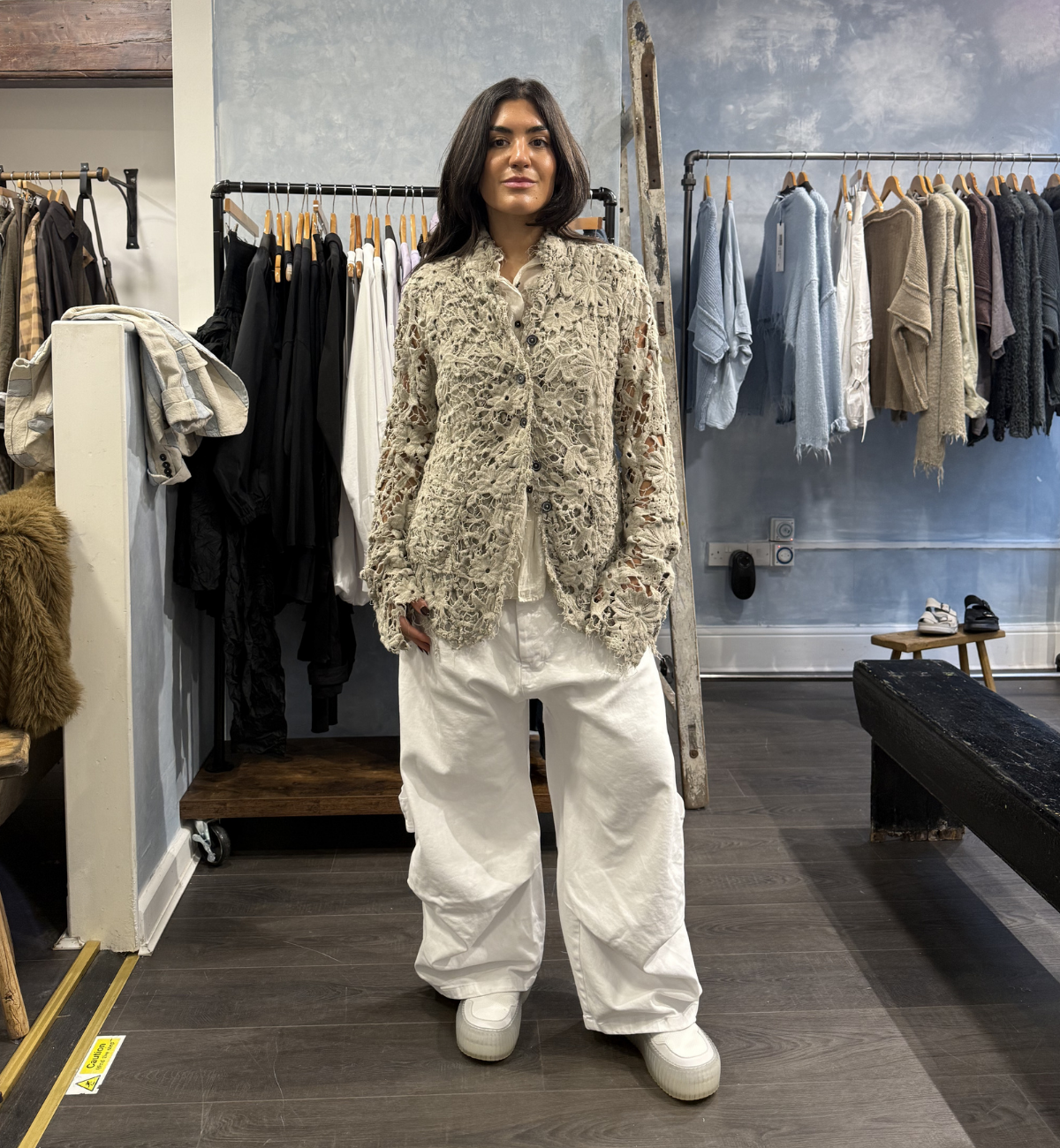 OUTFIT 4 - MASHING UP THE LINEN FOG LACE JACKET FROM RUNDHOLZ DIP, YAS PAIRS THE MAINLINE MARSHMALLOW BLOUSE LAYERED UNDERNEATH.