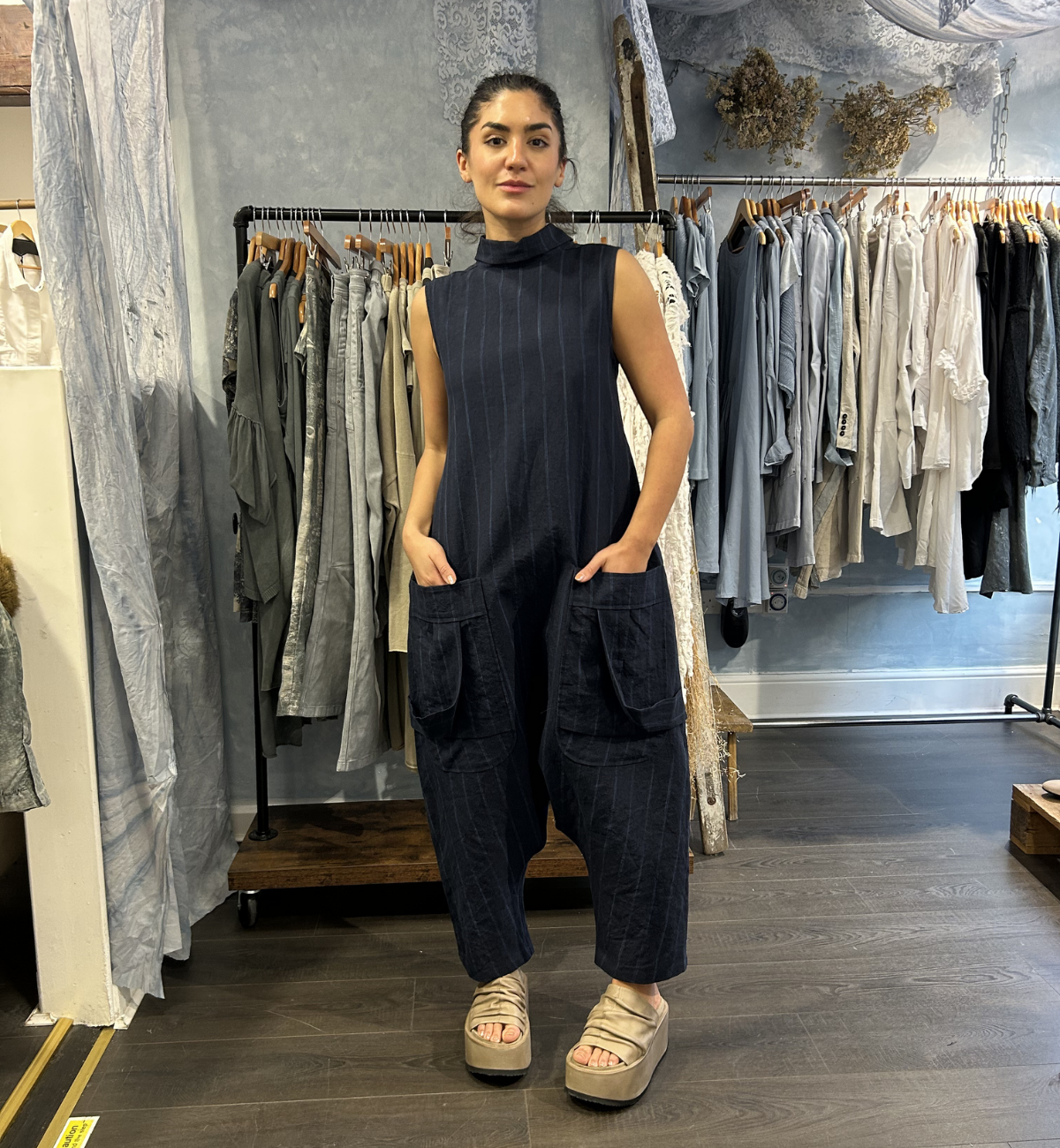 OUTFIT 2 - YAS STYLES THE MAINLOVER OVERALL IN THE NAVY STRIPE, FOR AN EFFORTLESS EVERYDAY LOOK.
