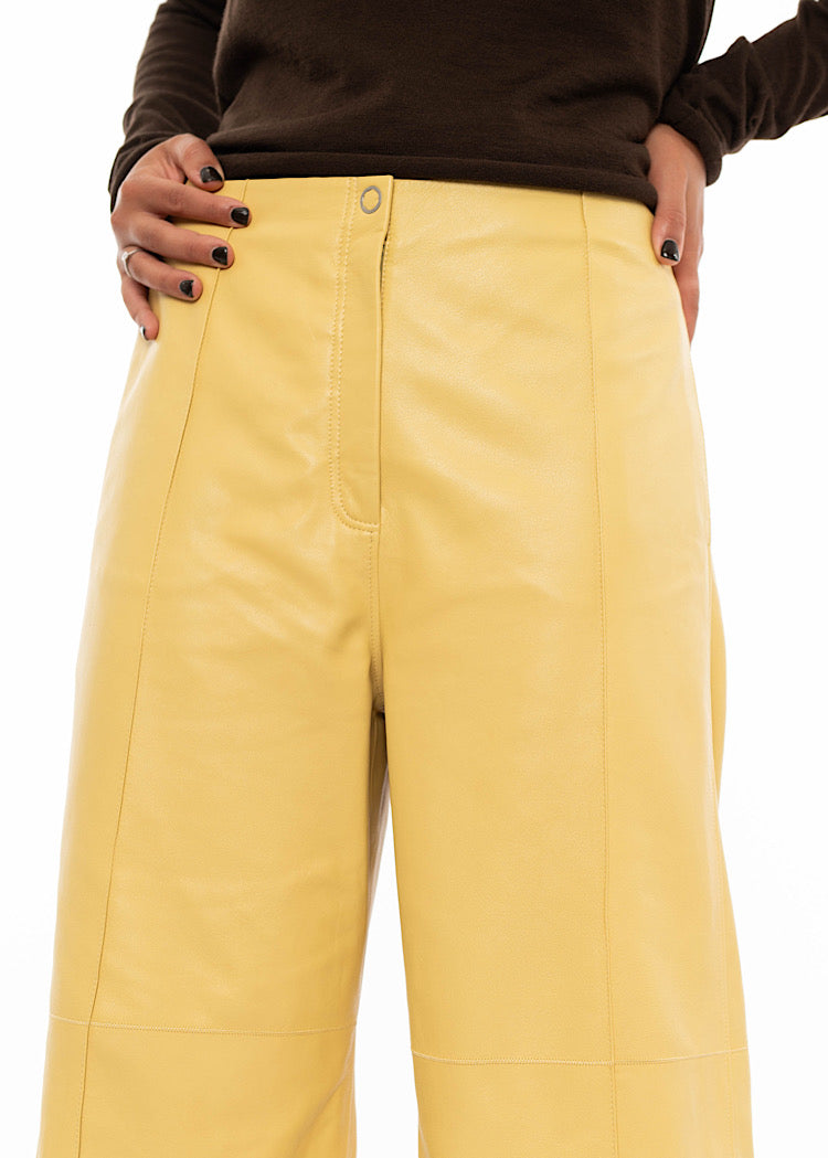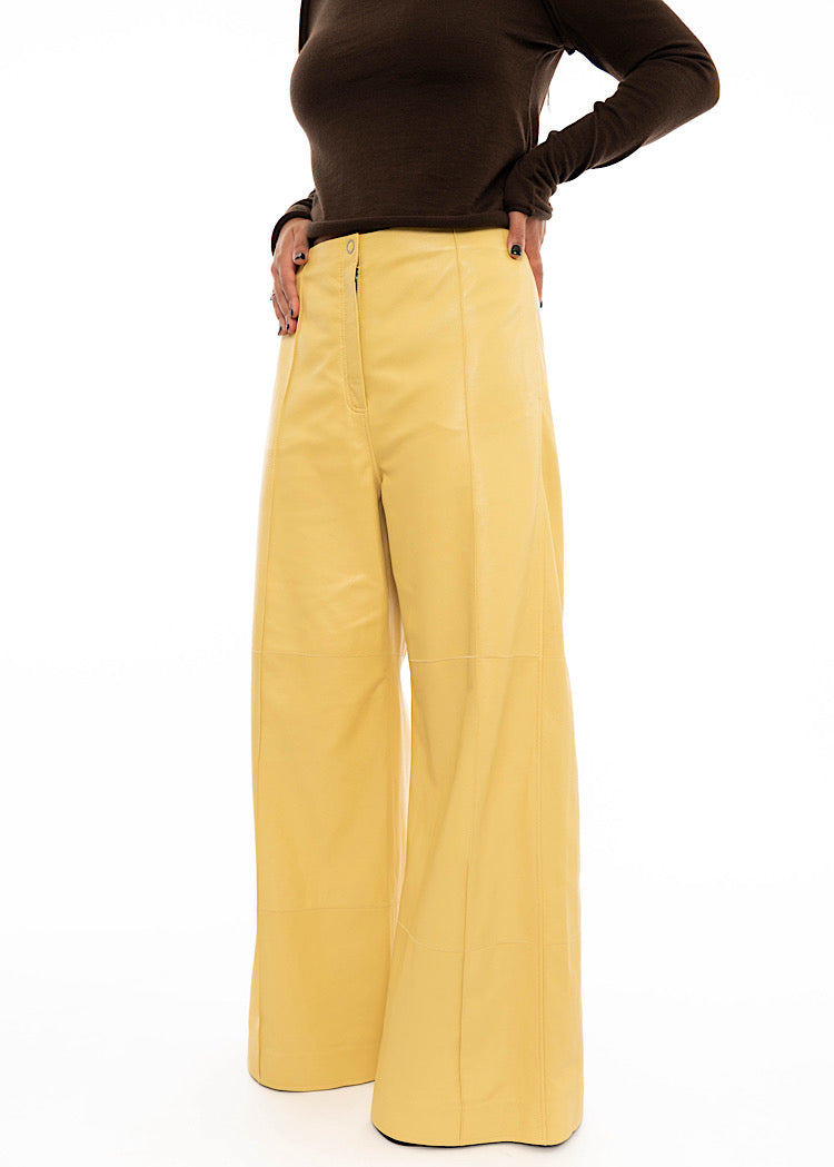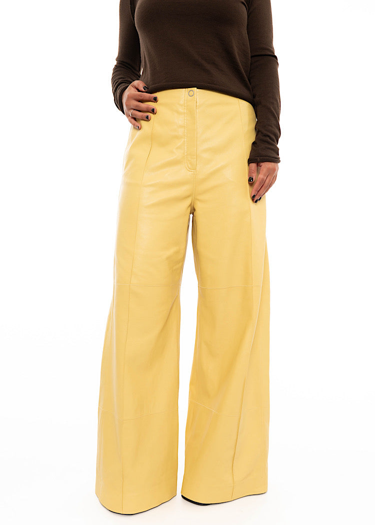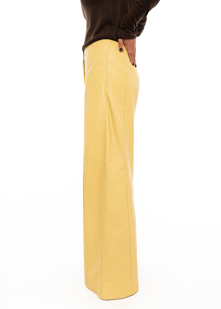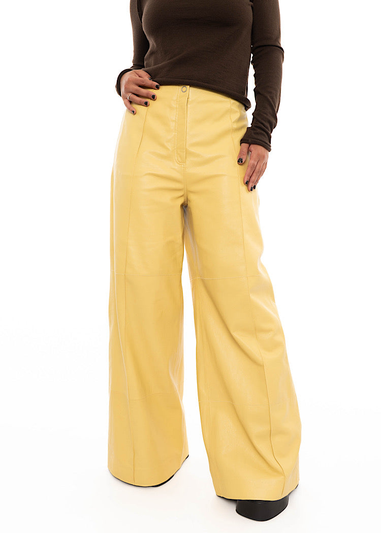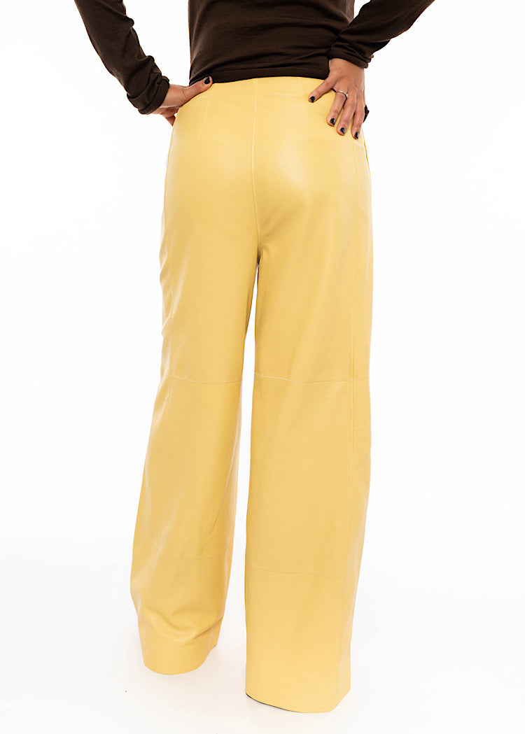 A straight leg Leather trouser from ANNETTE GÖRTZ. Featuring a fixed waistband, a popper and zip to fasten and side seam pockets. Finished with Seam darts running throughout.