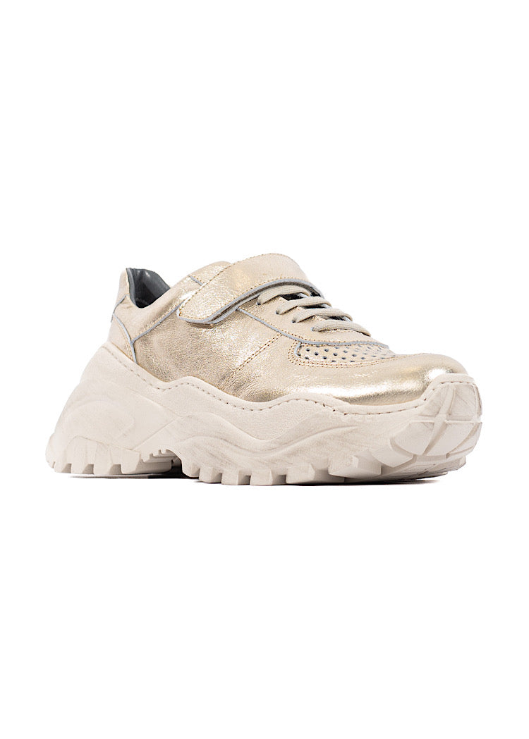 A classic chunky Trainer from LOFINA SS25. Featuring laces to fasten, a velcro strap, and ventilation details. Finished in a special edition coated Leather and the classic Rubber sole.
