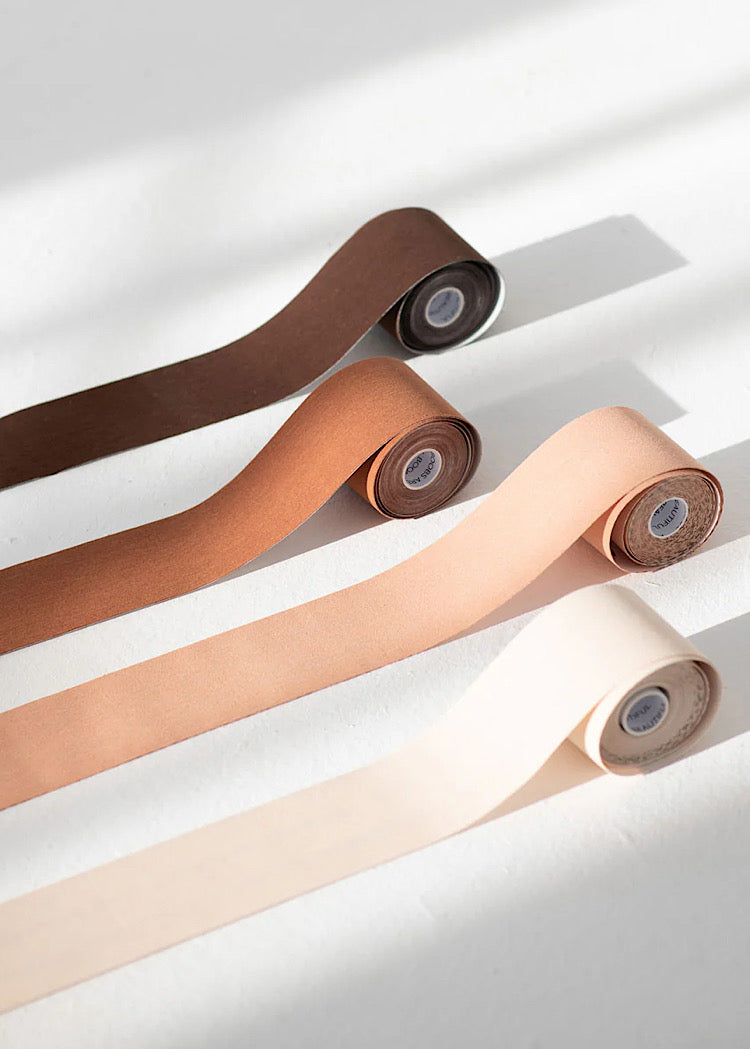 Sustainably made, hemp fabric breast tape that provides lift, shape & support wherever you need it. Available in a 3" wide design option delivering easy application and 33% more wear than normal breast tapes. We recommend wearing NOOD's No-Show nipple covers underneath for a smooth finish.