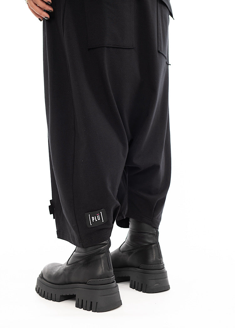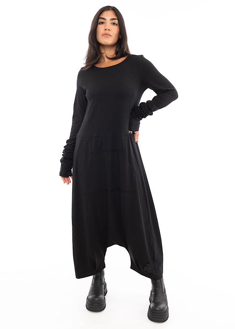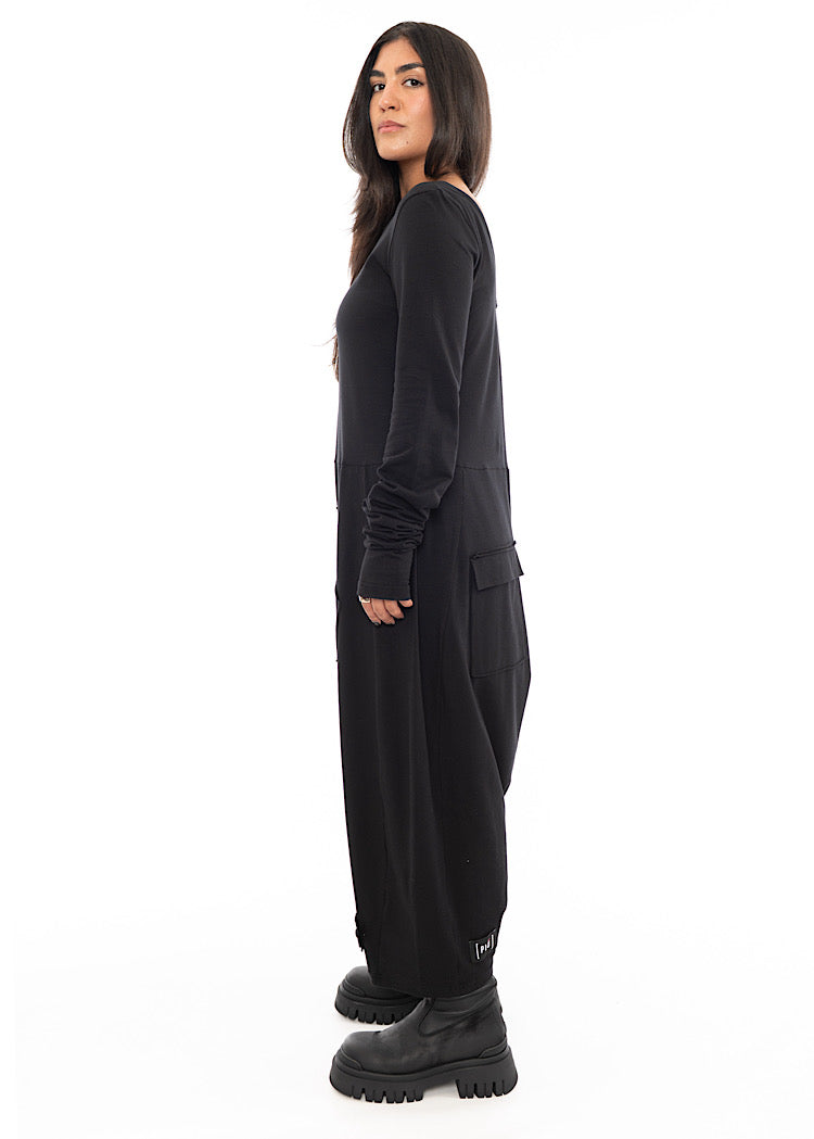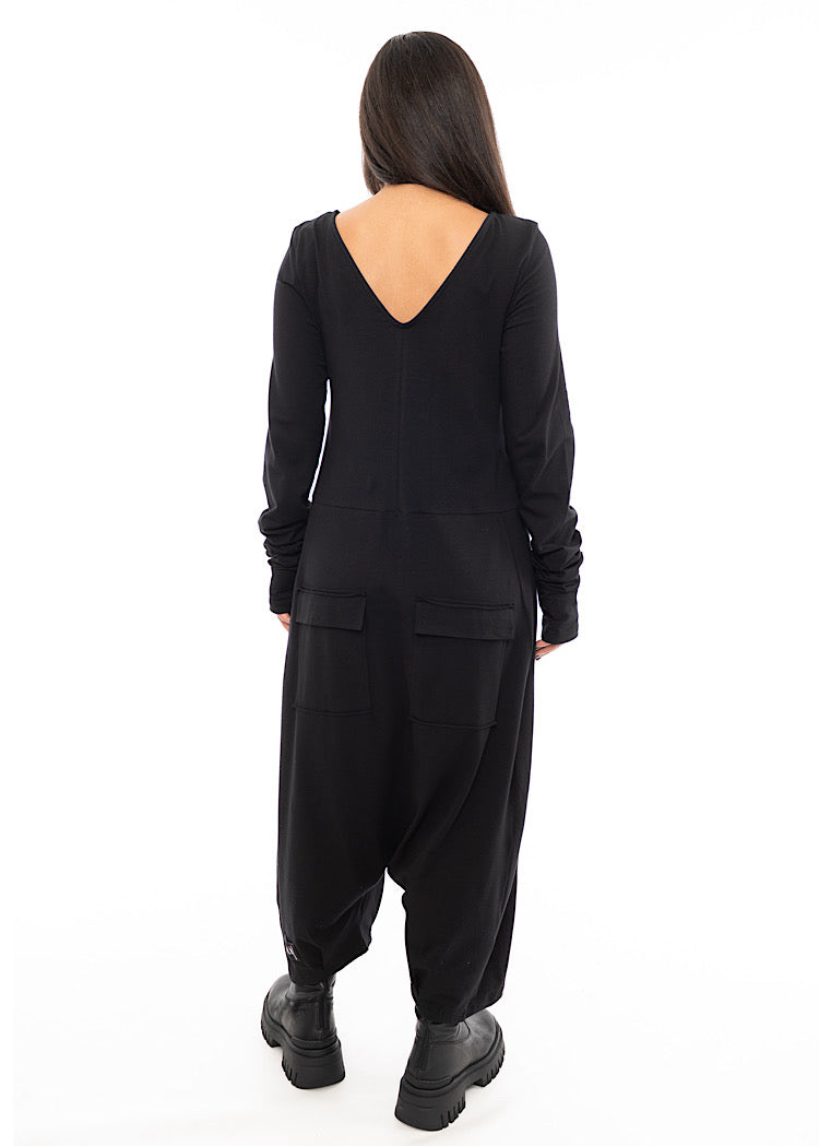 A relaxed fit jumpsuit from PLU AW25. Featuring an exaggerated drop-crotch, a V neckline at the rear and long sleeves. Finished with an oversized front facing pockets and the iconic detachable PLU patch.