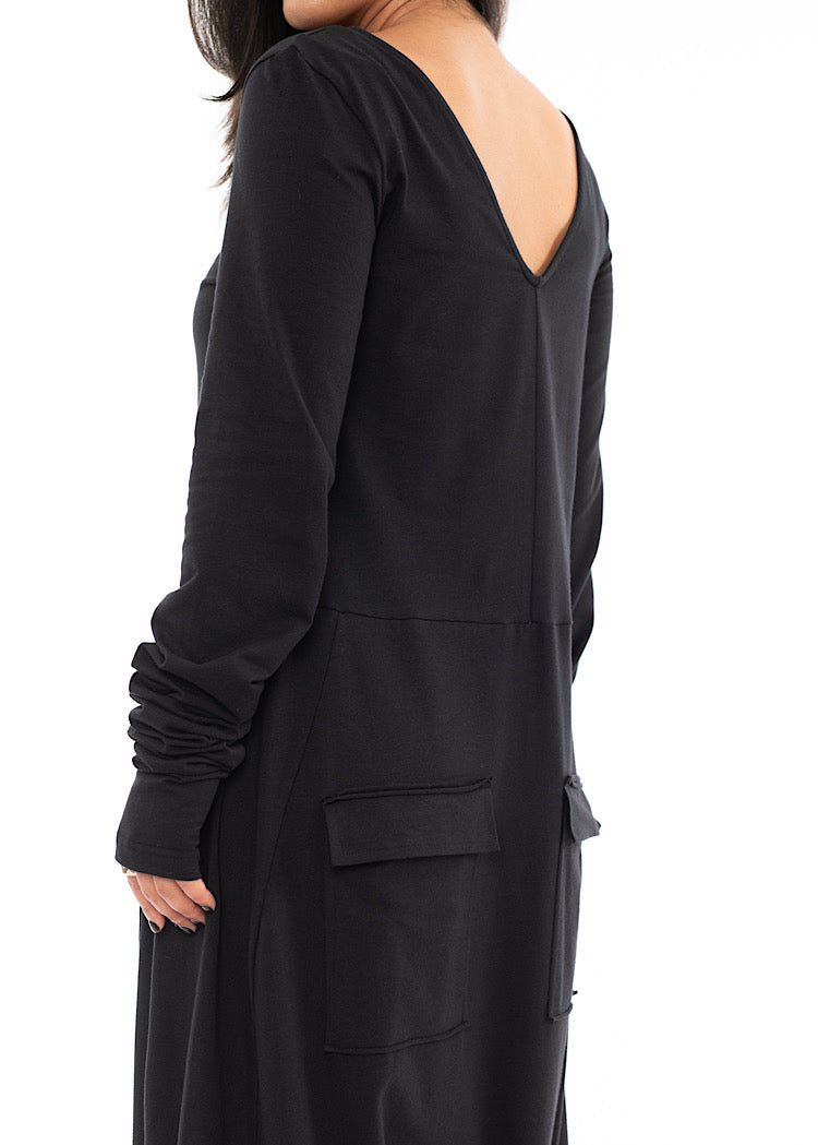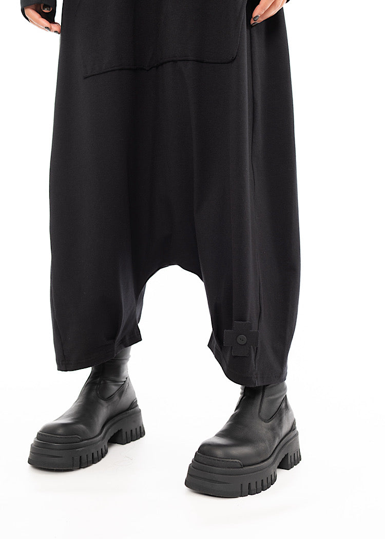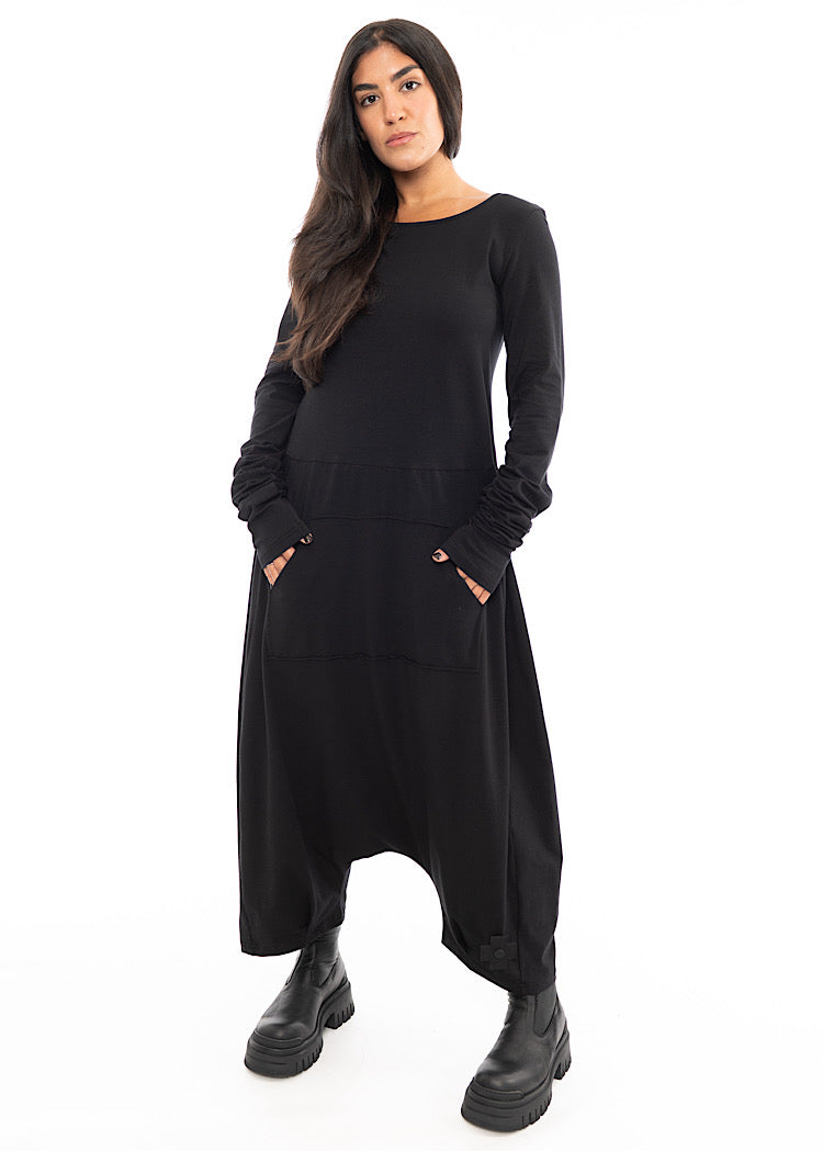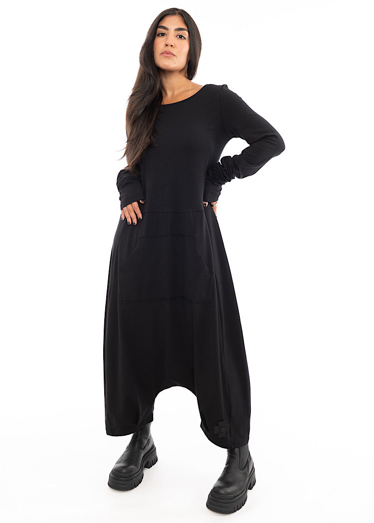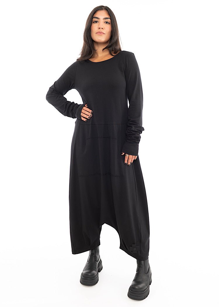 A relaxed fit jumpsuit from PLU AW25. Featuring an exaggerated drop-crotch, a V neckline at the rear and long sleeves. Finished with an oversized front facing pockets and the iconic detachable PLU patch.