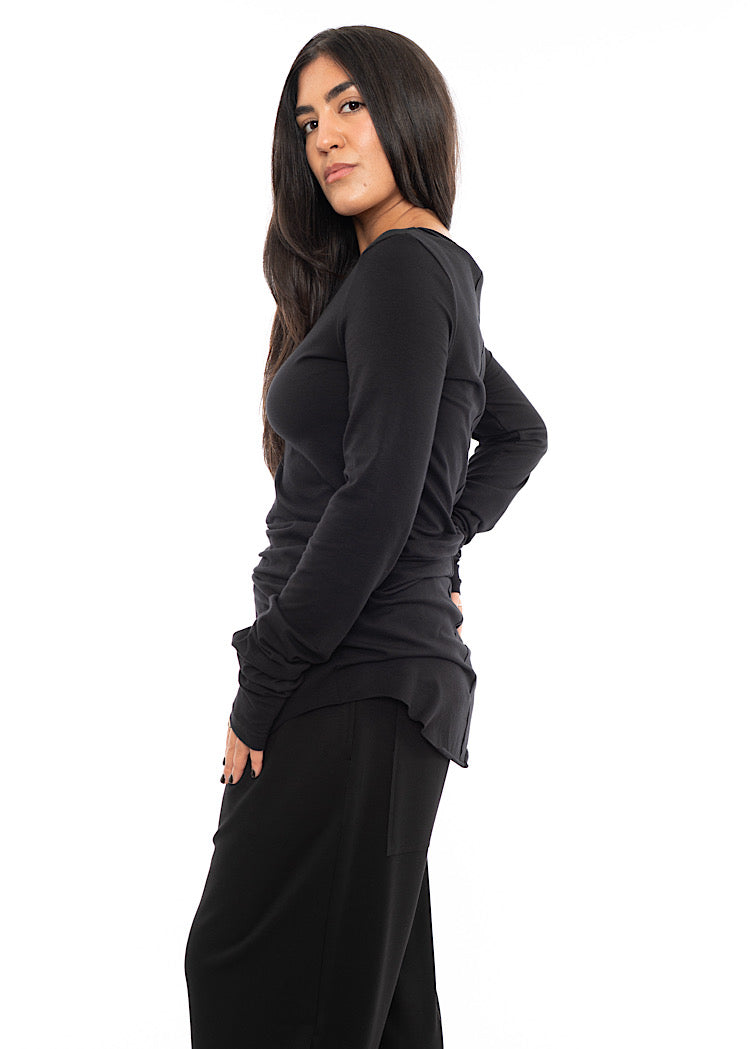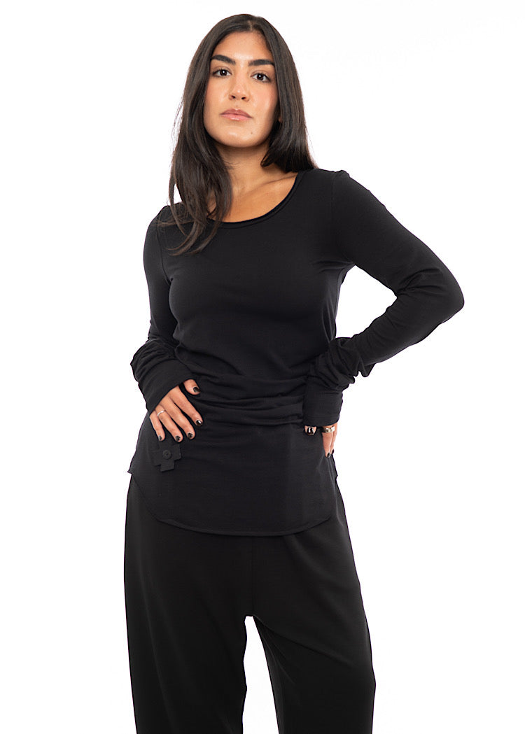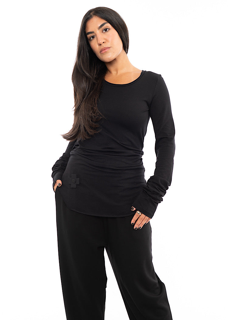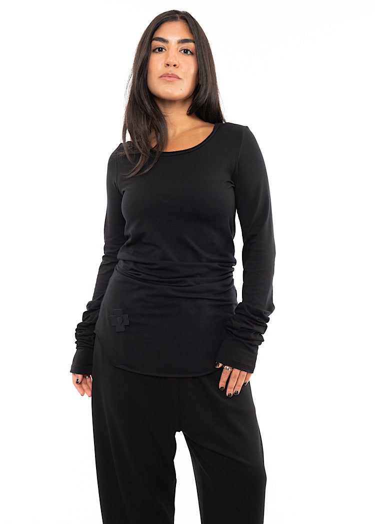 A classic cotton top from PLU AW25. Featuring a rounded neckline and long sleeves, finished with the iconic detachable PLU patch.