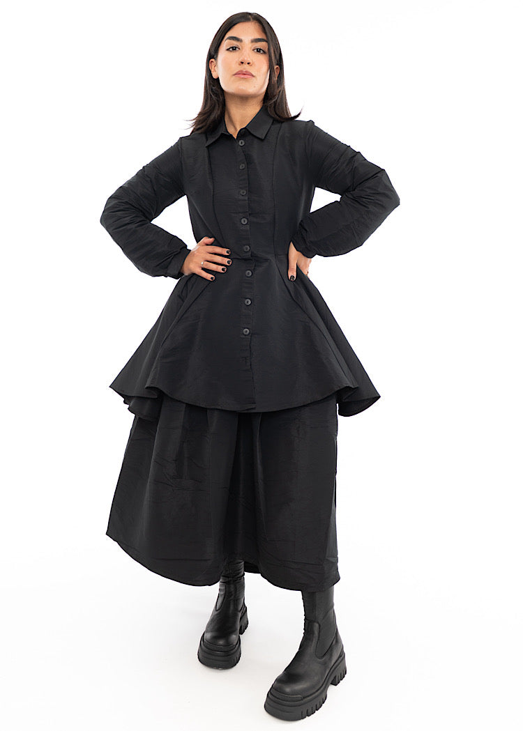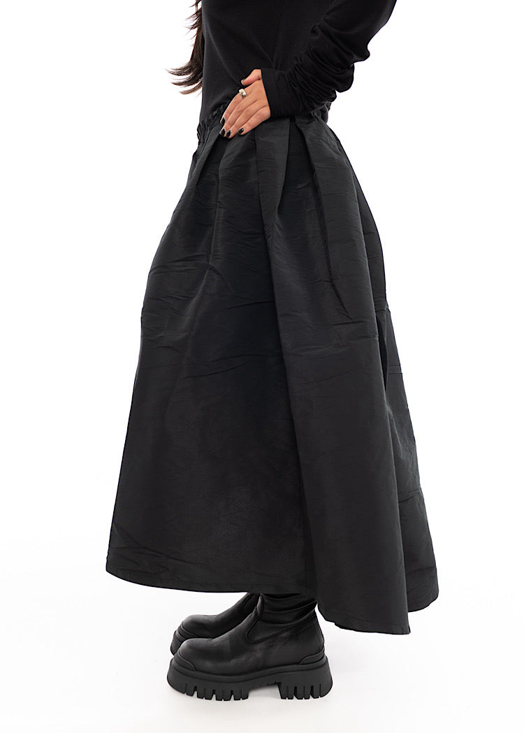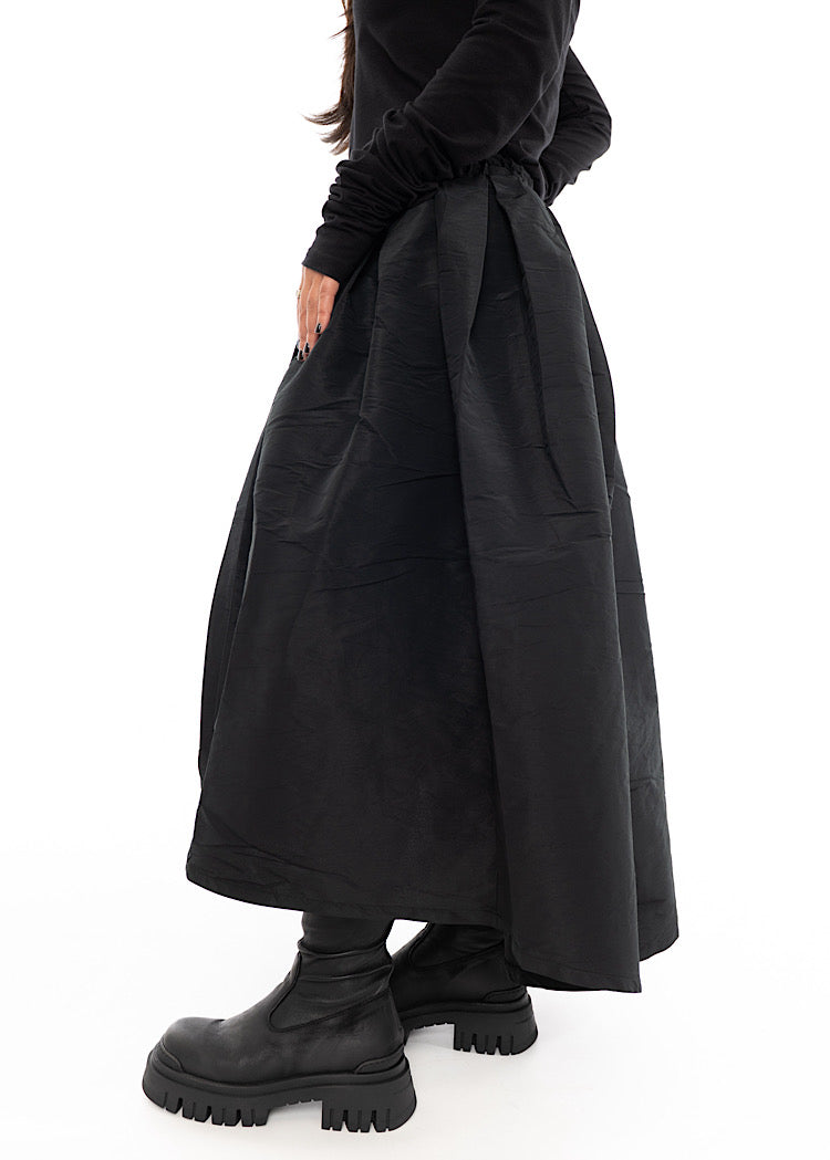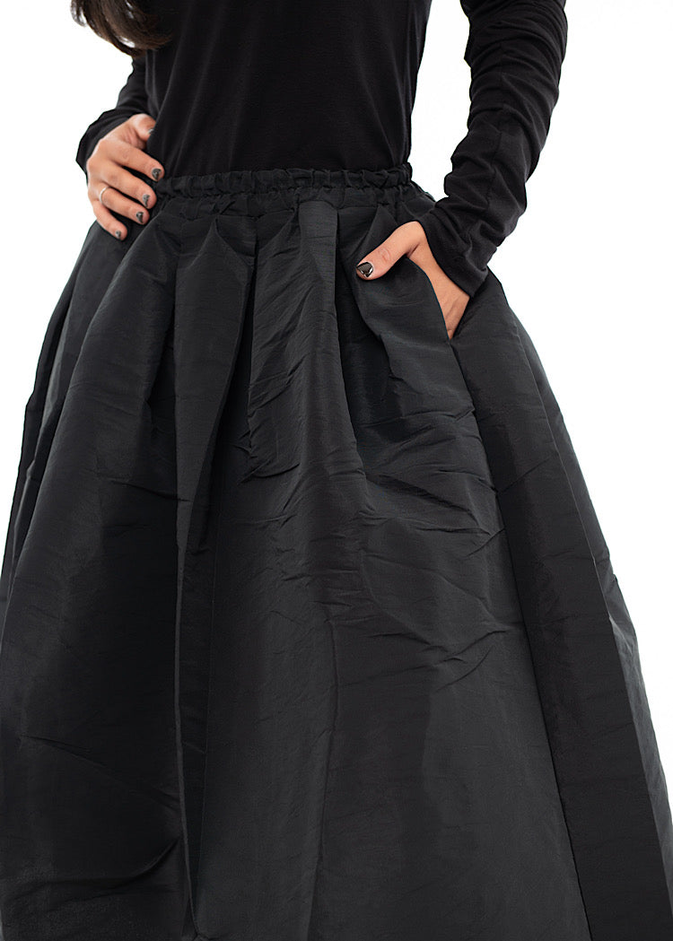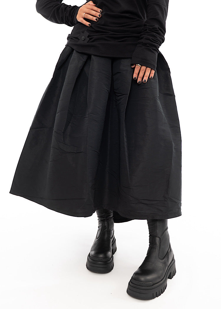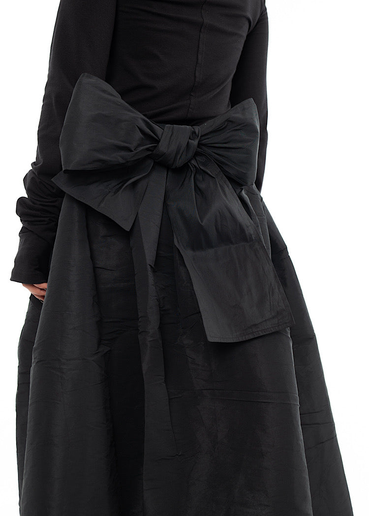 A medium-weight, structured taffeta Skirt from PLU for the Autumn/Winter '25 Season. Features include a fully elasticated waistband for comfort, side seam pockets and a pleated detail at the waistline to add volume. A removable belt is also included, which can be tied to create a statement bow at the reverse.