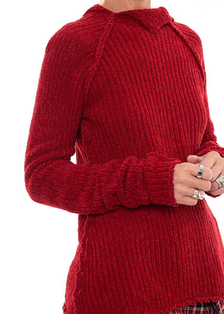 A distressed fitted Pullover from RUNDHOLZ MAINLINE in a woven design. Features include long sleeves, seam details for added structure and a unique styled neckline.