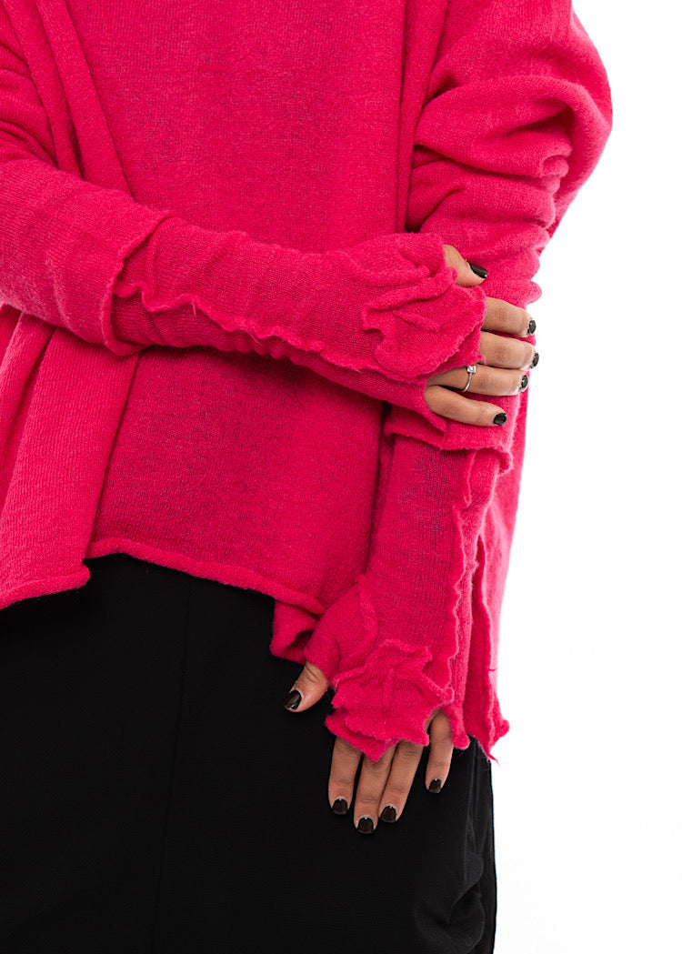 A knitted cuff from RUNDHOLZ BLACK LABEL in boiled Virgin Wool, a fabric that has become synonymous with RUNDHOLZ. The fingerless gloves feature a ruffle detail which reflect the Autumn/Winter '25 motif, inspired in part by Andy Warhol's flowers.