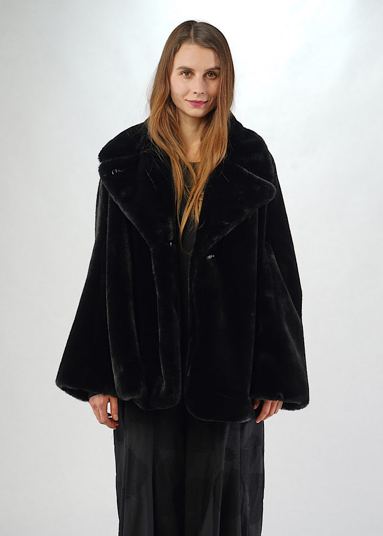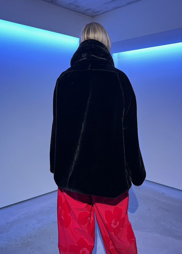 EDITOR'S NOTE : When it comes to outerwear that makes an entrance, this BLACK LABEL faux-fur jacket is a House of Valerie must-have. The brushed sheen of the faux fur and bold oversized cut give it instant impact, perfect for elevating simple knits or dresses. For an effortlessly RUNDHOLZ winter look, we love it thrown over drop-crotch trousers. Pair with chunky Lofina boots to balance the drama of the silhouette.