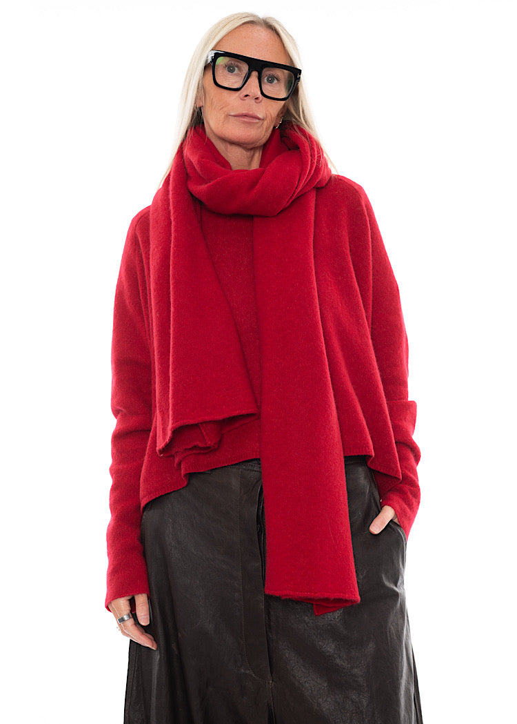 EDITOR'S NOTE : Perfect for draping, knotting, or layering to add a bold pop of colour and texture to any outfit. Layer up with other pieces from this season's BLACK LABEL knitwear selection for a cosy, co-ordinated RUNDHOLZ look.