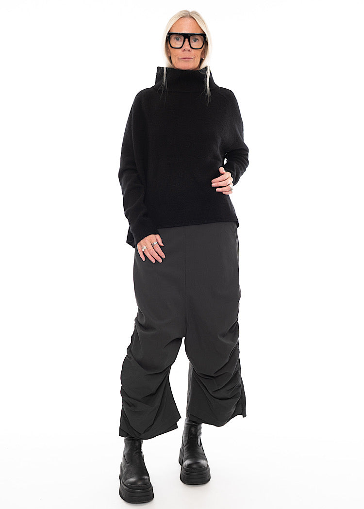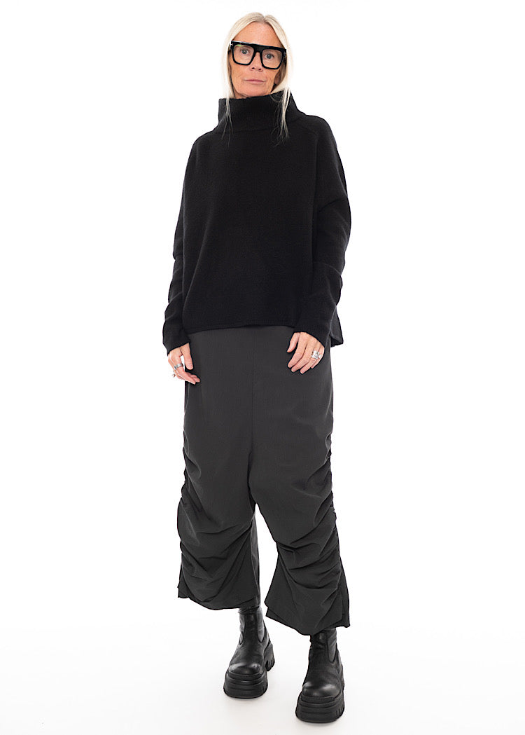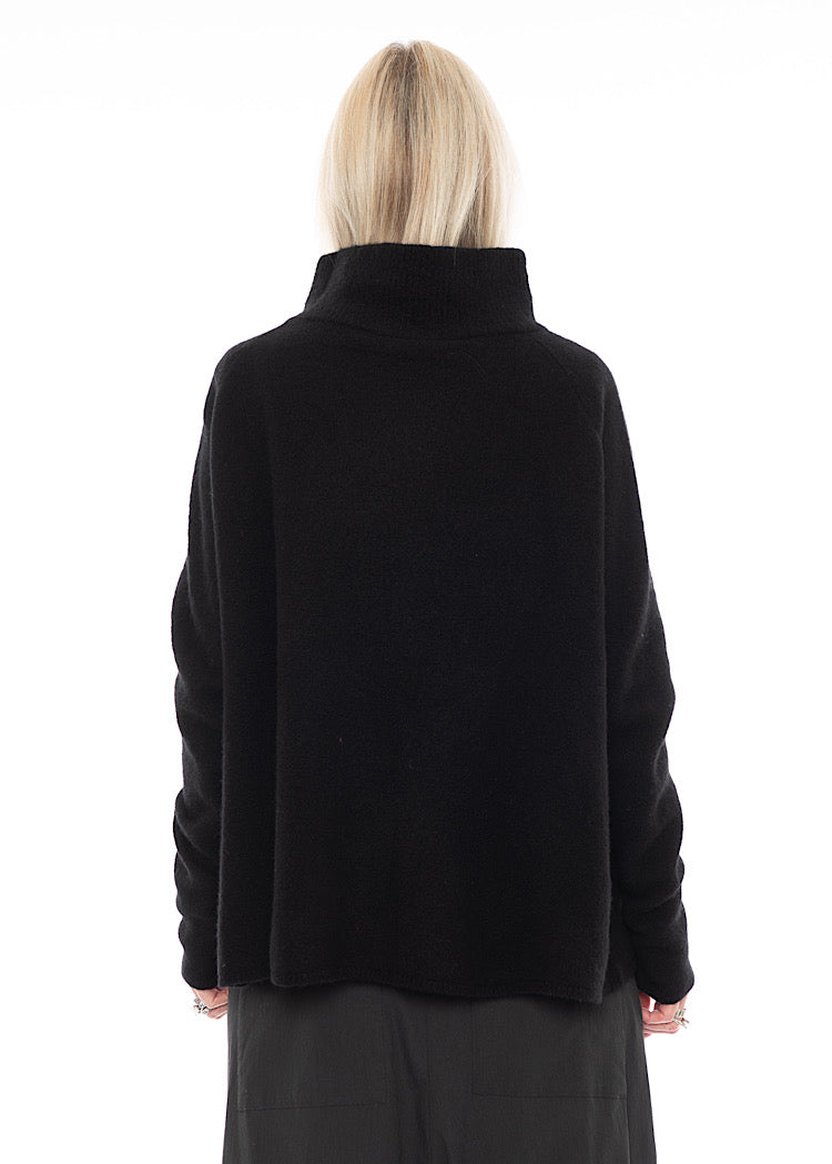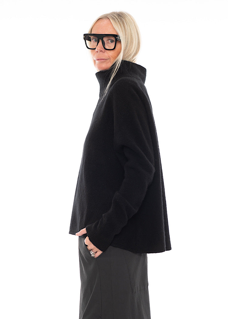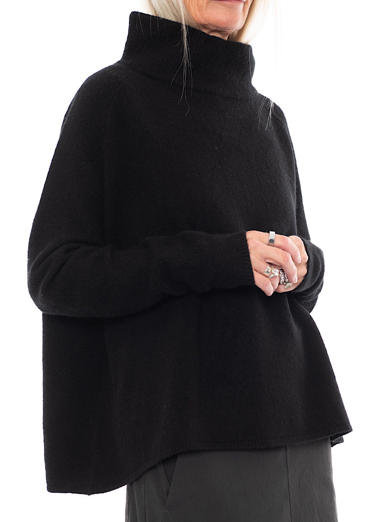 A versatile knitted Pullover from RUNDHOLZ BLACK LABEL in a textured Wool-Mix fabric. The oversized silhouette features a high neckline, dropped shoulders and elongated sleeves, creating a relaxed, sculptural drape. Finished with a subtly asymmetric hemline for a modern twist on a timeless staple.