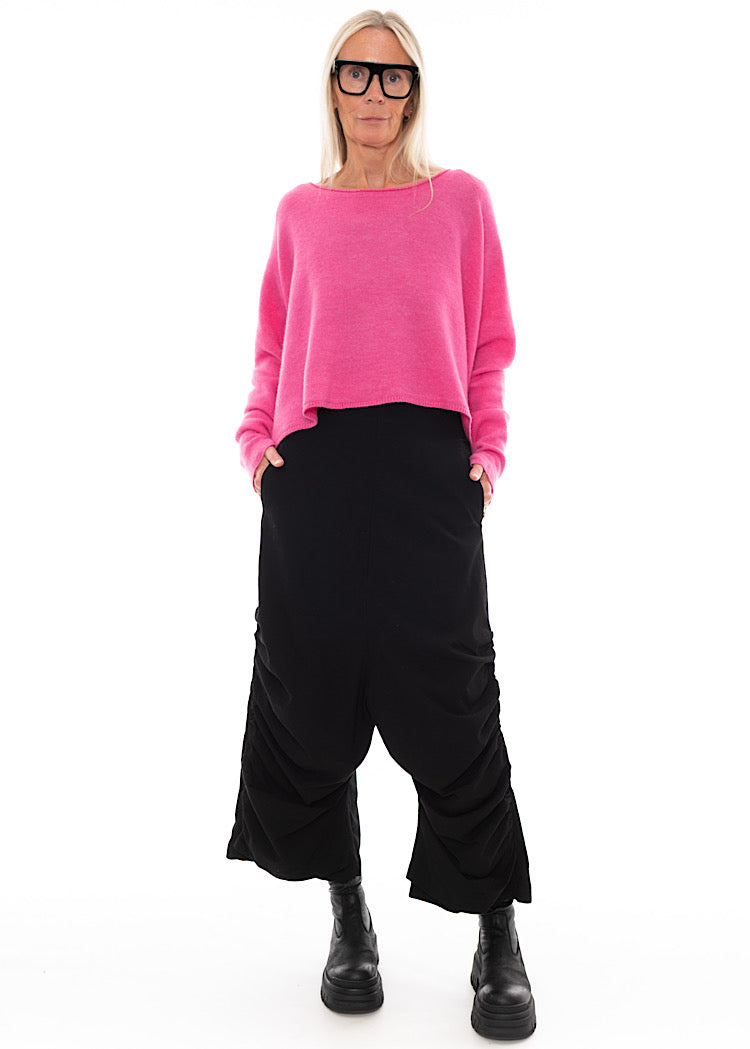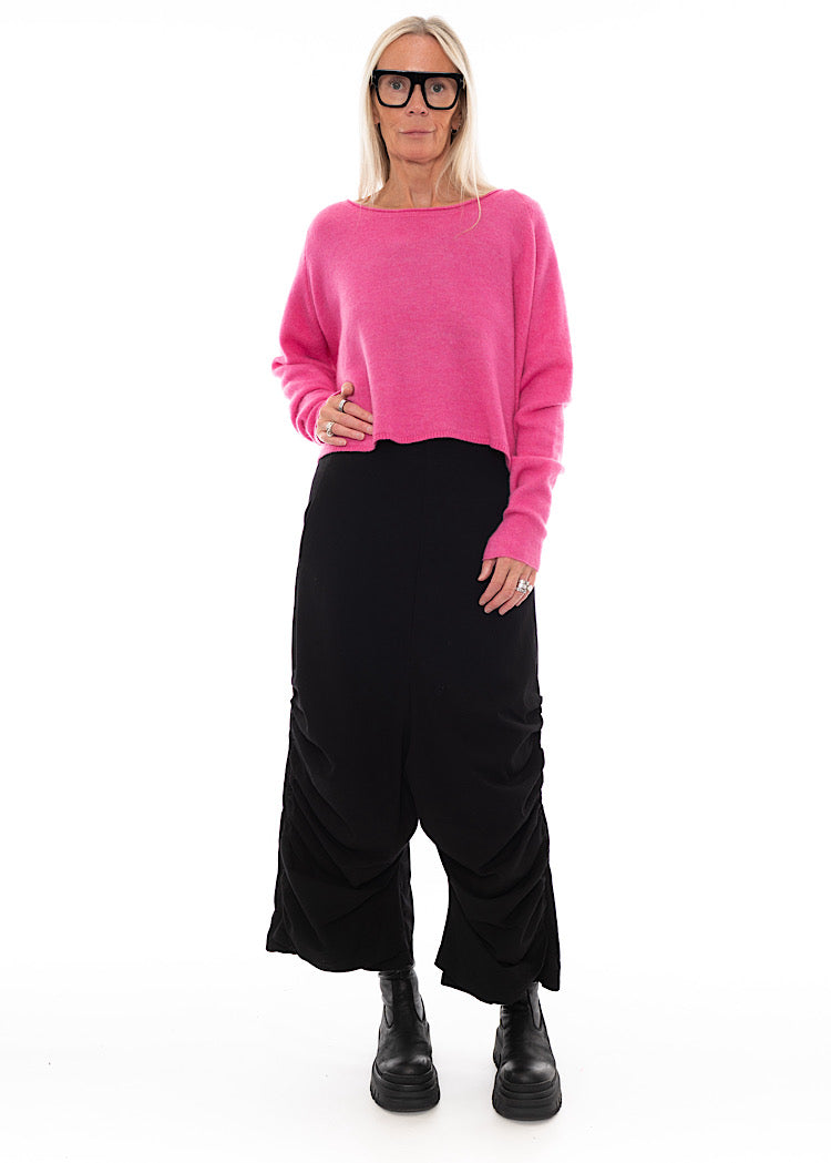 EDITOR'S NOTE : A House of Valerie favourite - this season there is no shortage of options when it comes to knitwear but this playful cropped Pullover from BLACK LABEL has caught our attention. The cropped length combined with the vibrant colour palette of Lily, Rose and Lotus makes it the kind of knit we'll all be reaching for to brighten up a grey Winter's day. Style it with Drop-Crotch Trousers or layered over Dresses for an instant mood boost. Complete the look with the co-ordinating accessories in the same fabric.