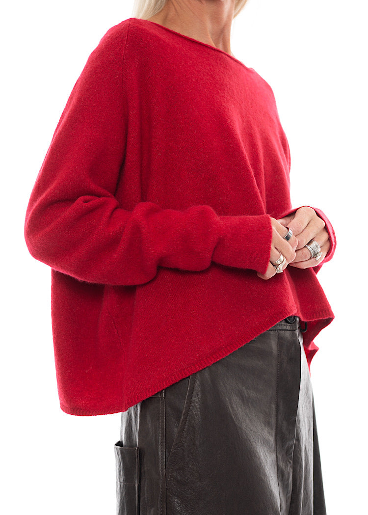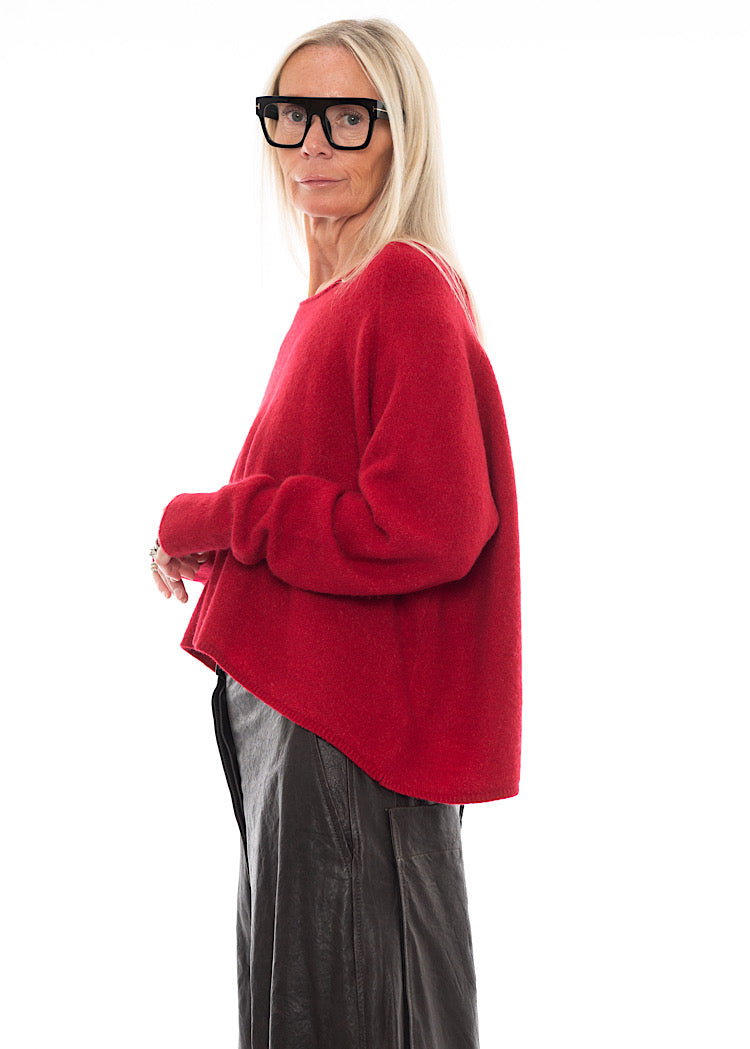 A relaxed-fit Pullover from RUNDHOLZ BLACK LABEL, crafted from a soft Wool-Mix knit. This cropped silhouette features dropped shoulders, a rounded neckline and a subtle scooped hemline.