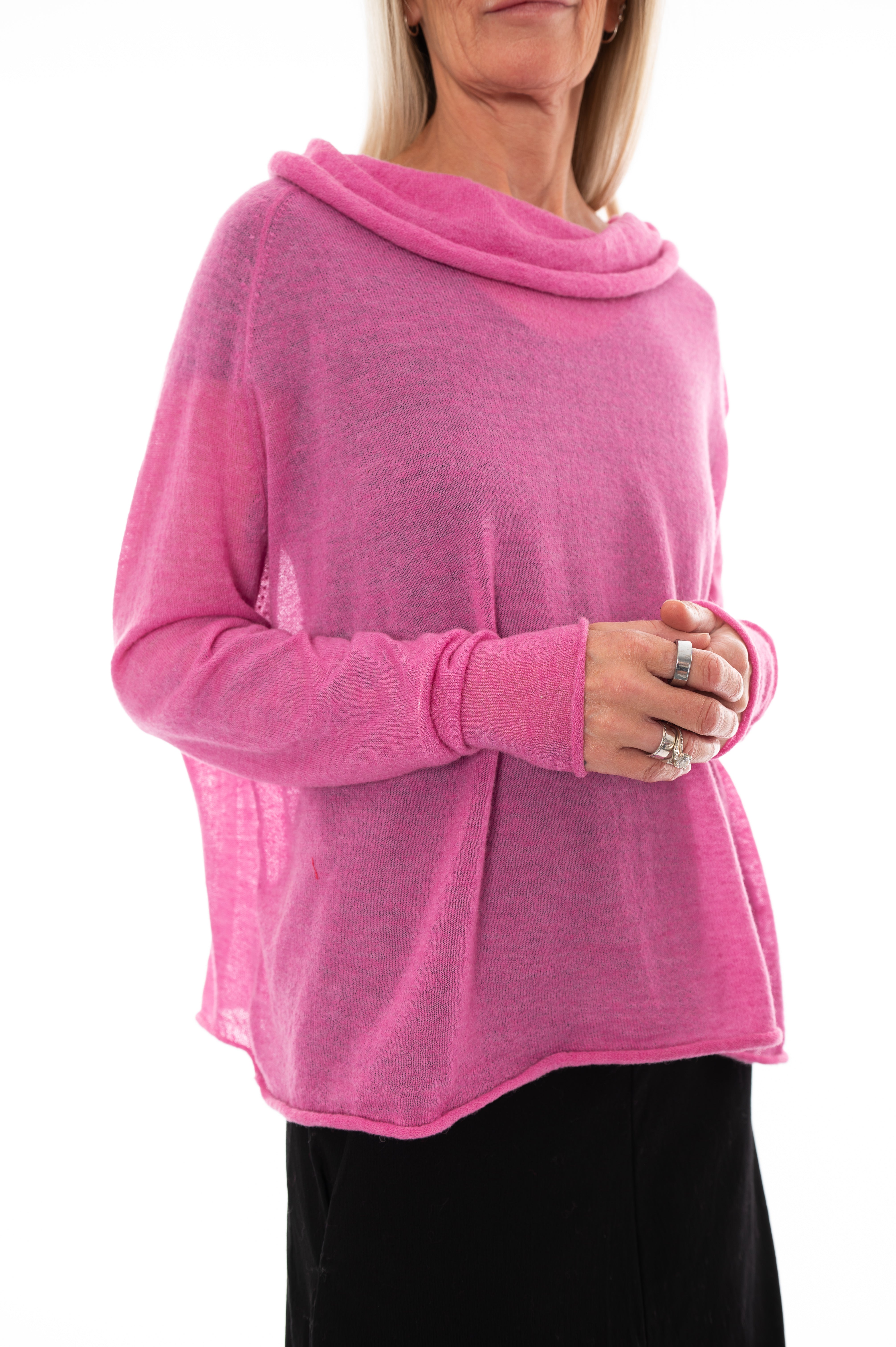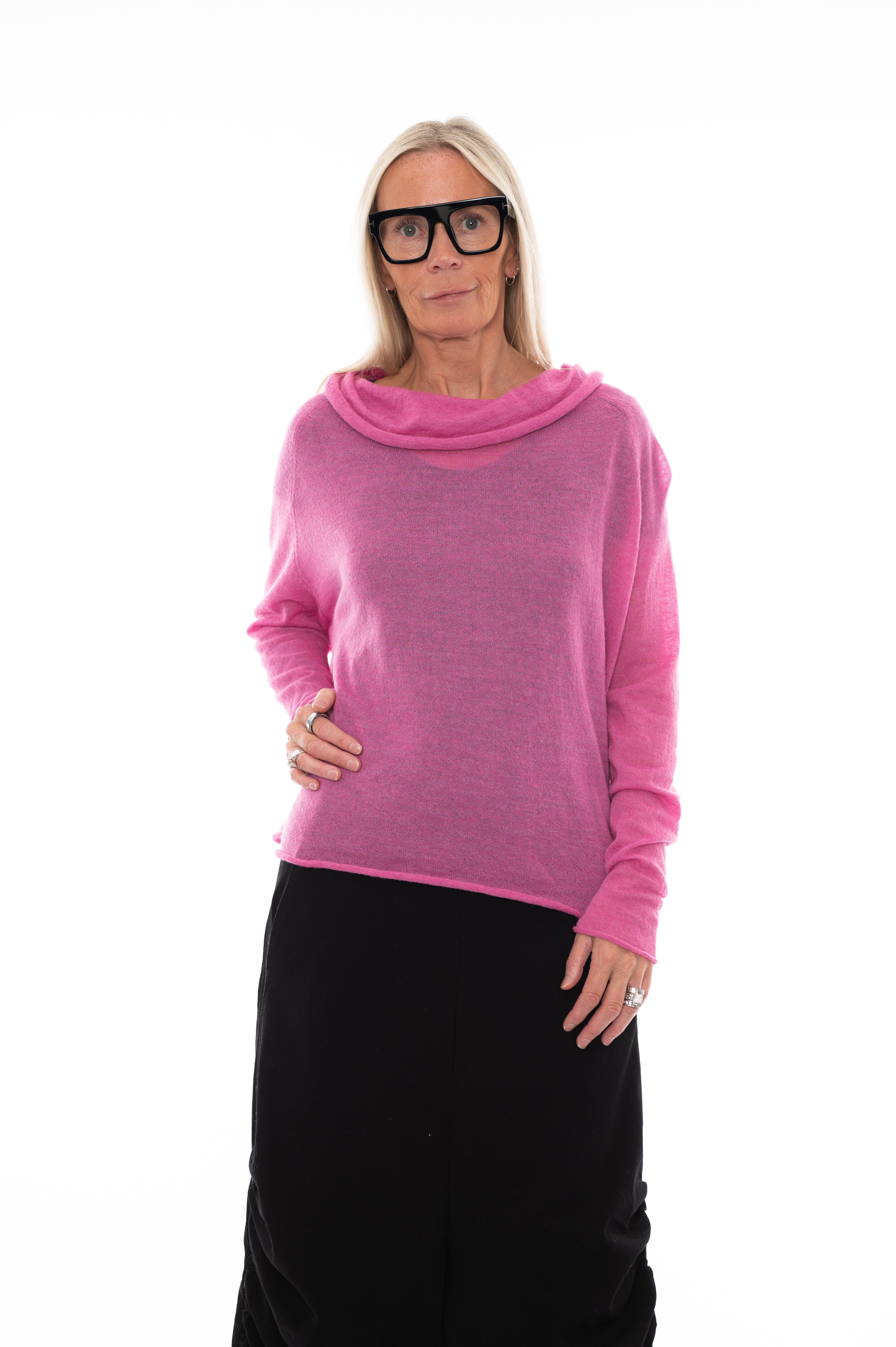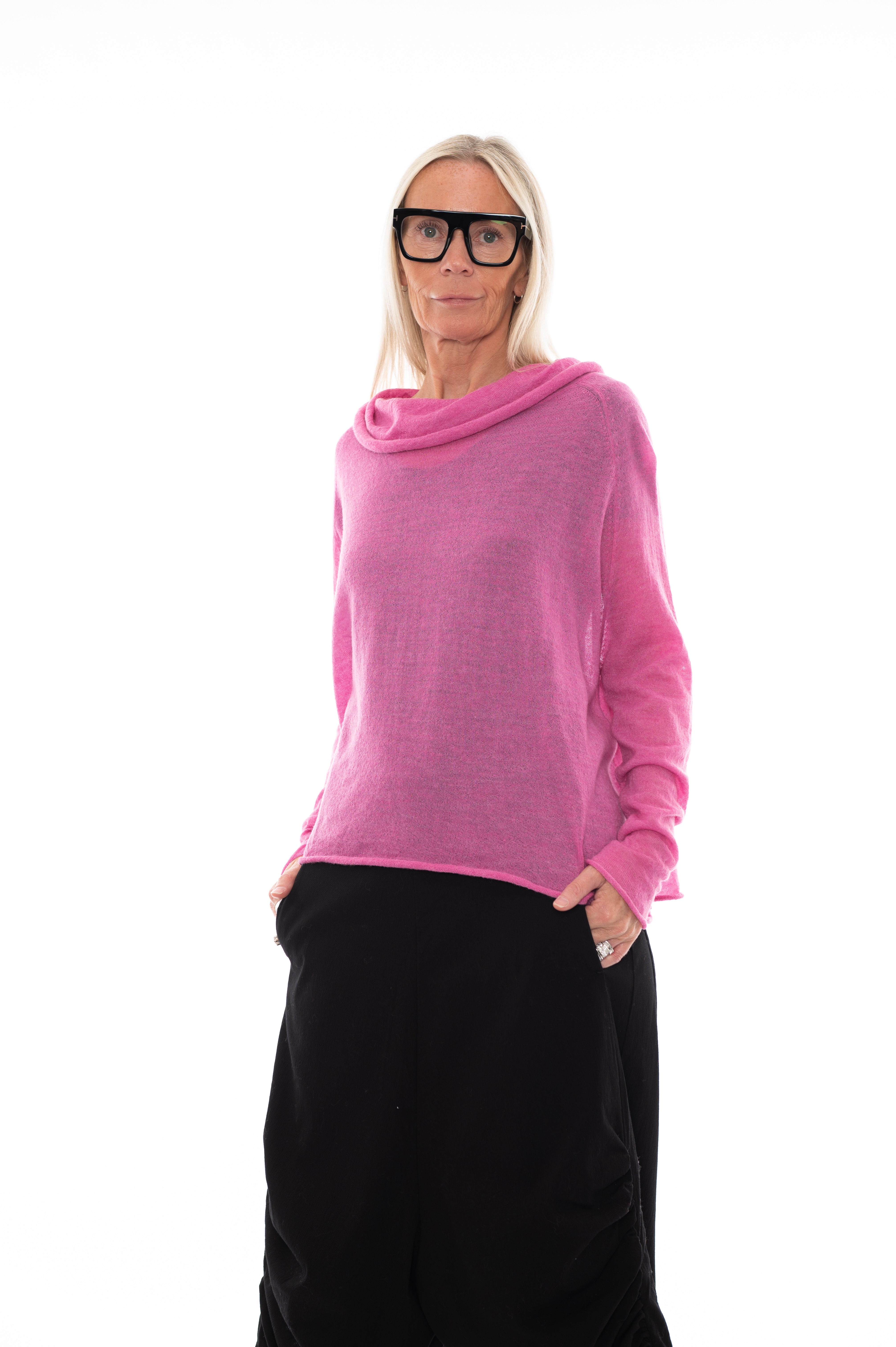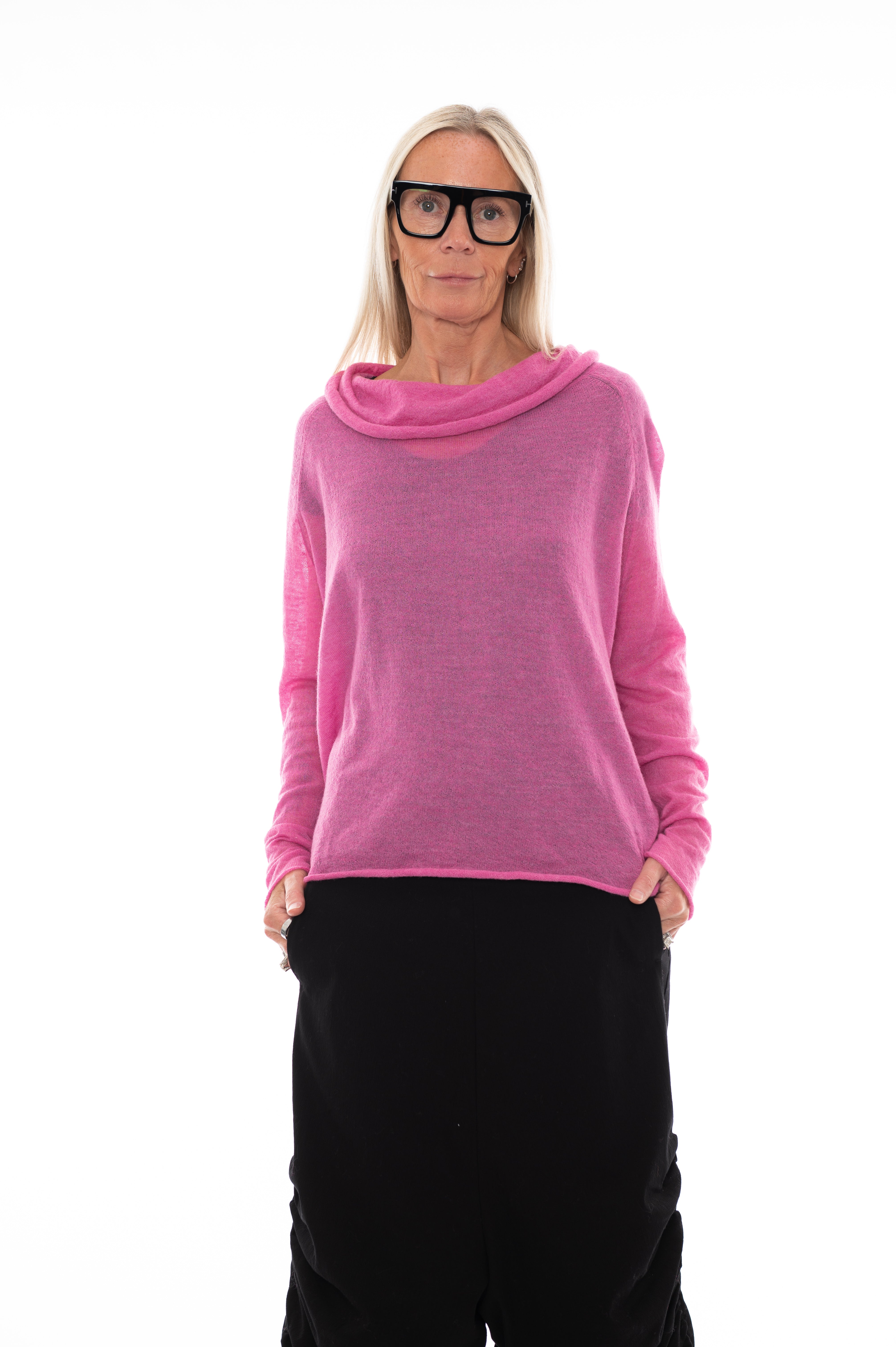 A lightweight Wool-Alpaca Mix Pullover from BLACK LABEL AW25, featuring a slouchy high neckline and scooped hemline. Details include rolled edges for a signature RUNDHOLZ look.