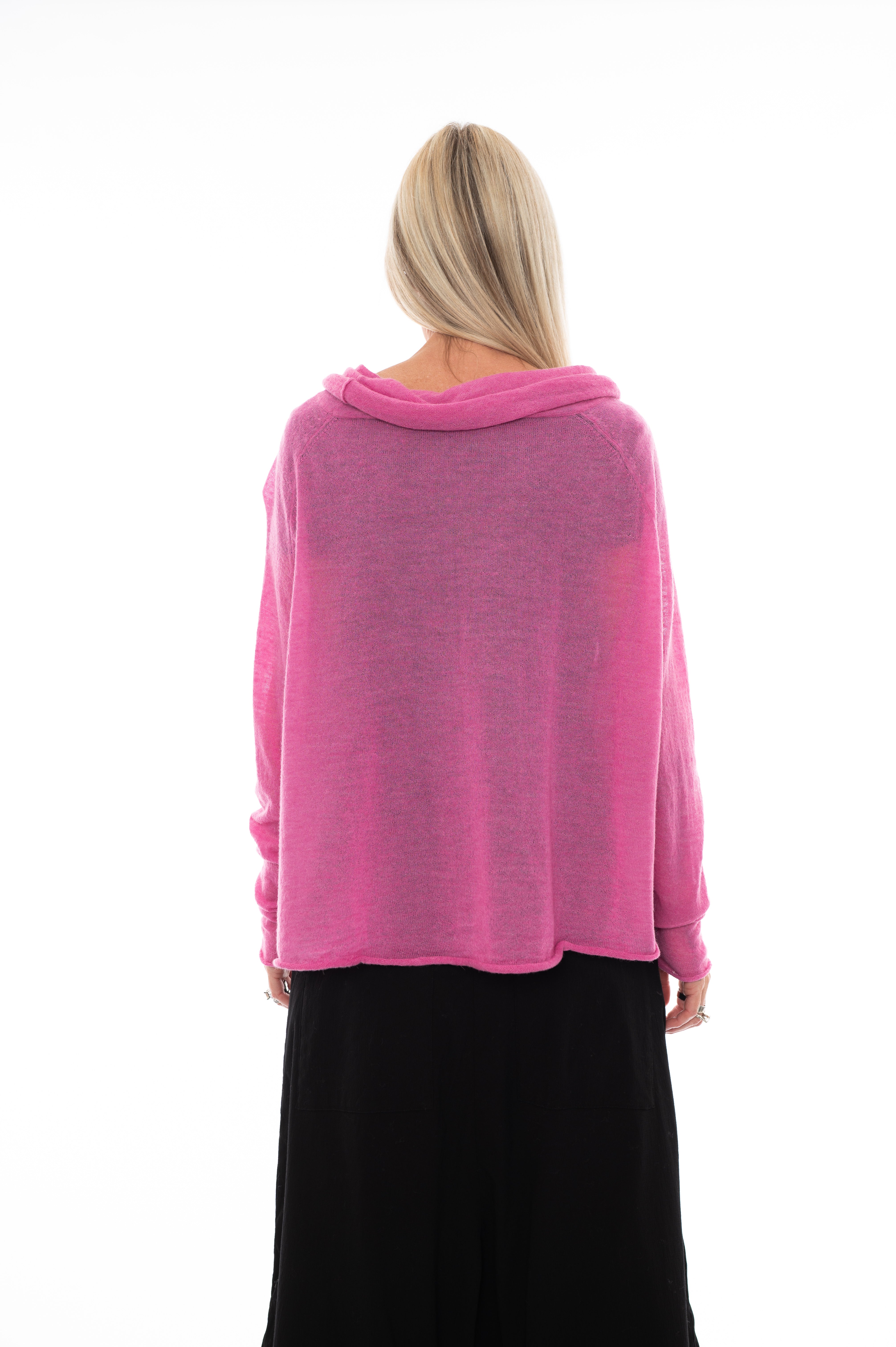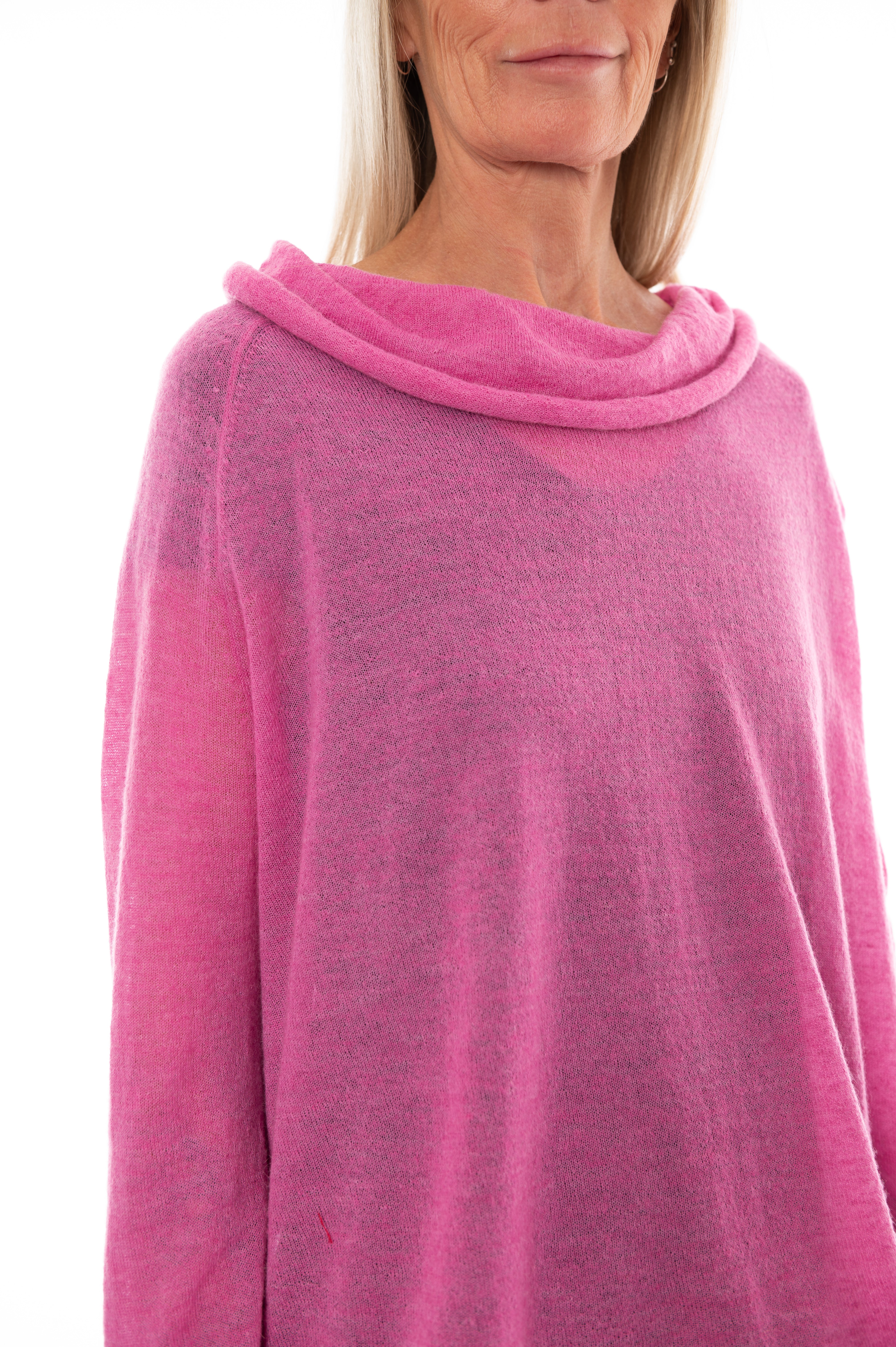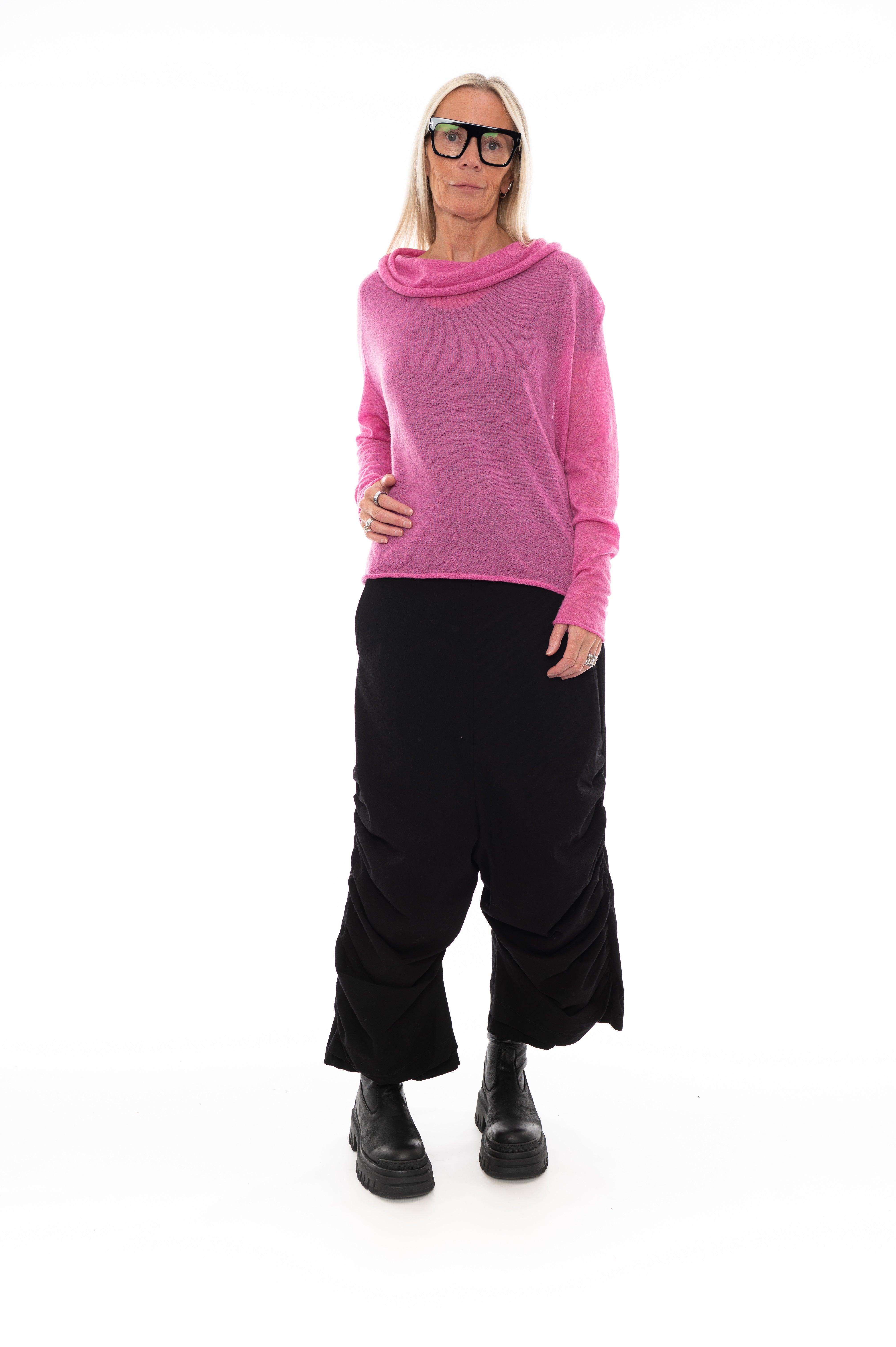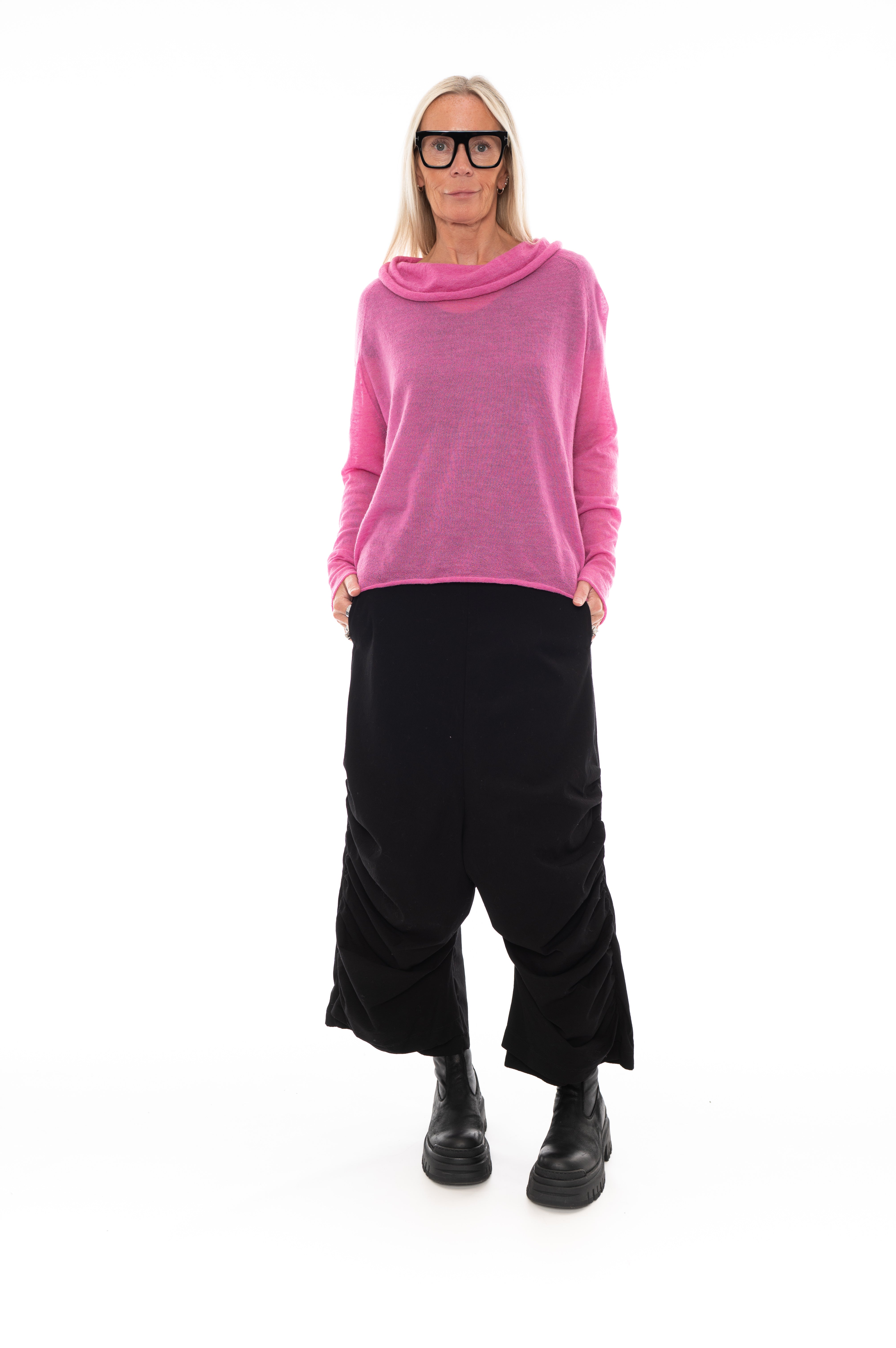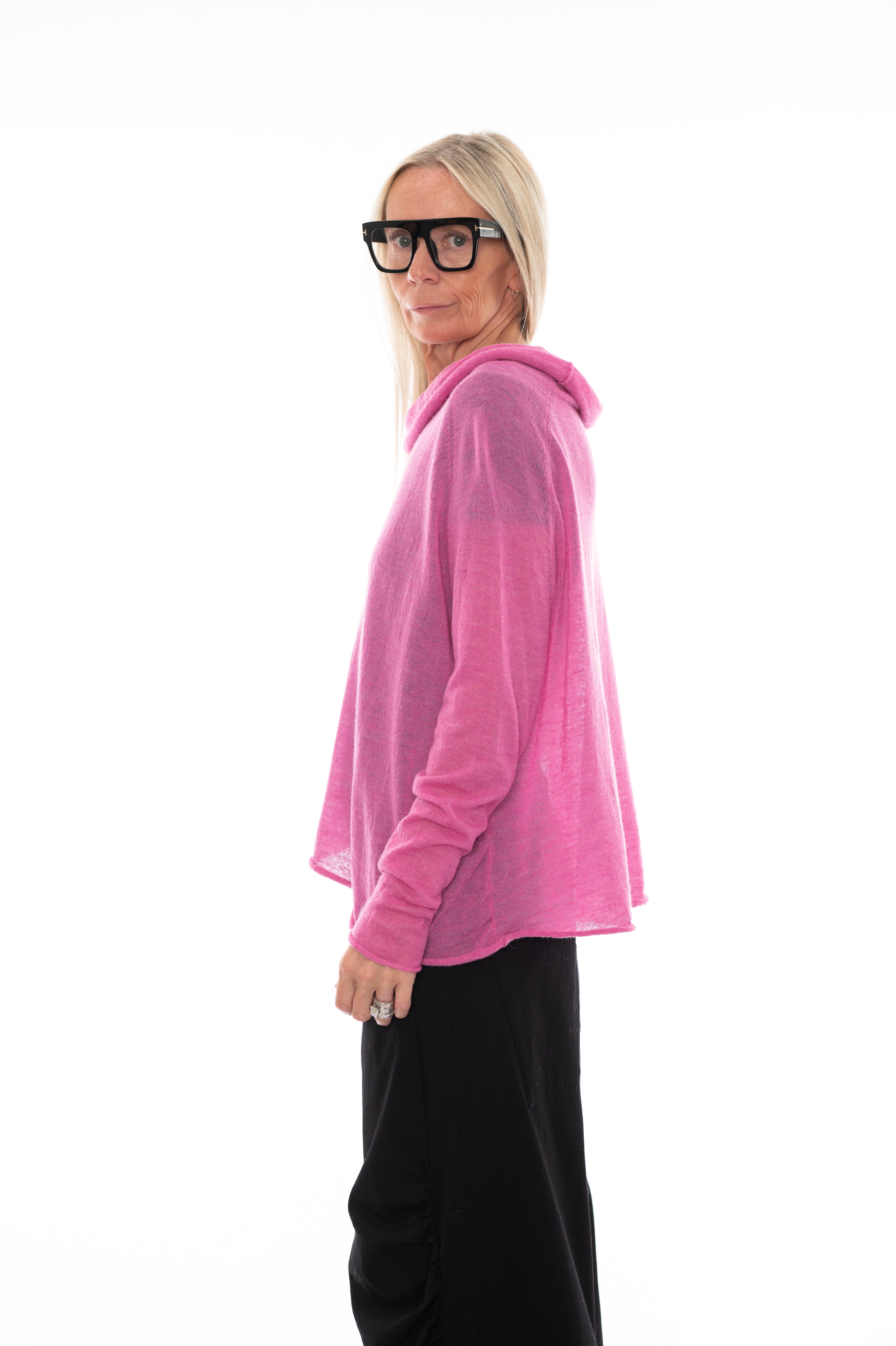 A lightweight Wool-Alpaca Mix Pullover from BLACK LABEL AW25, featuring a slouchy high neckline and scooped hemline. Details include rolled edges for a signature RUNDHOLZ look.
