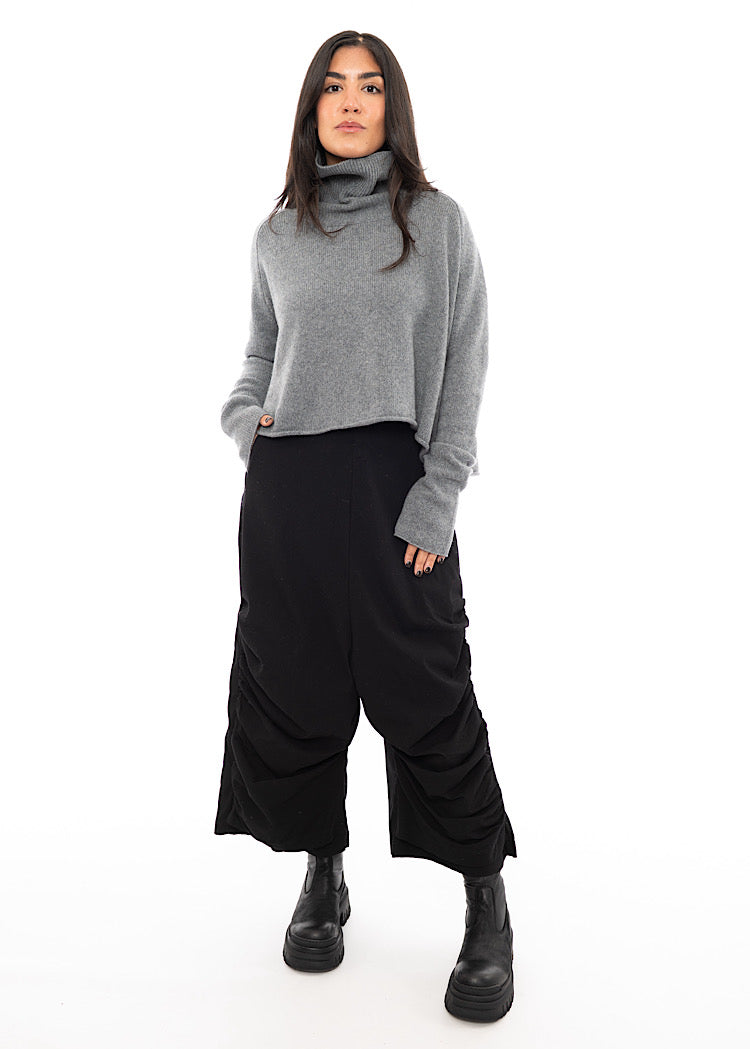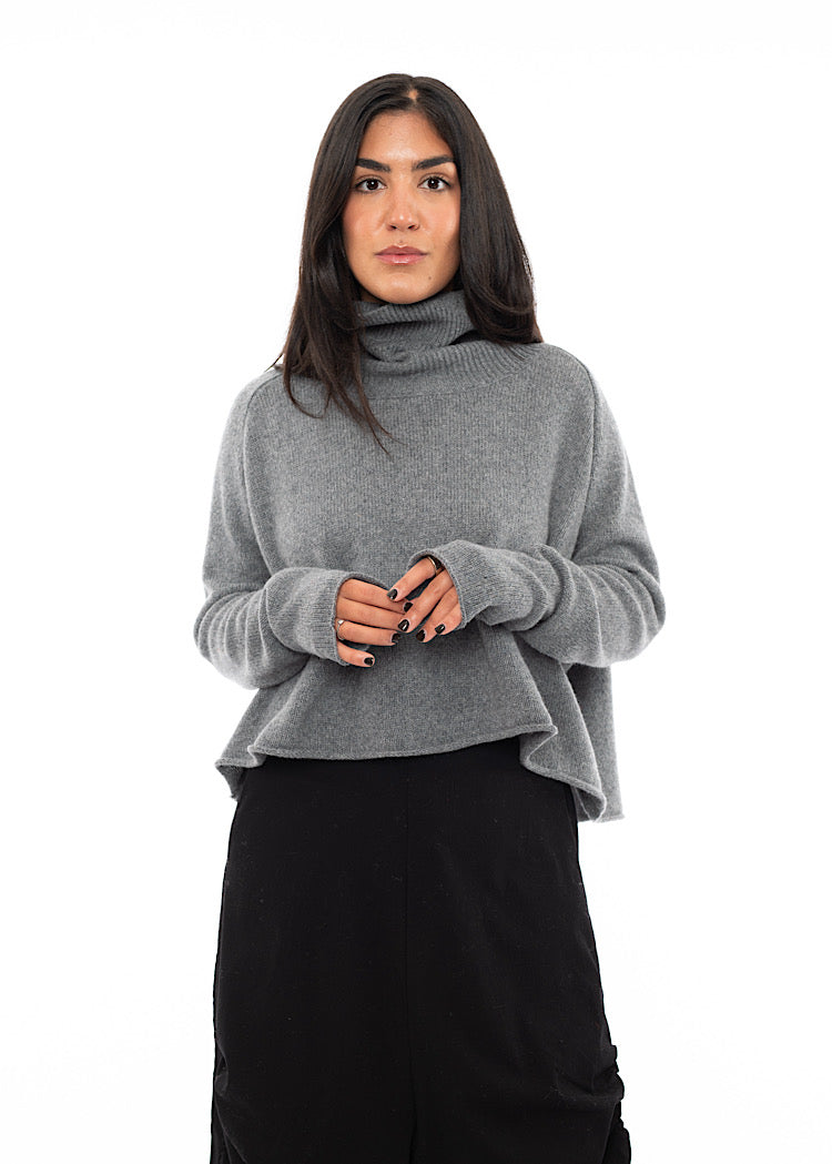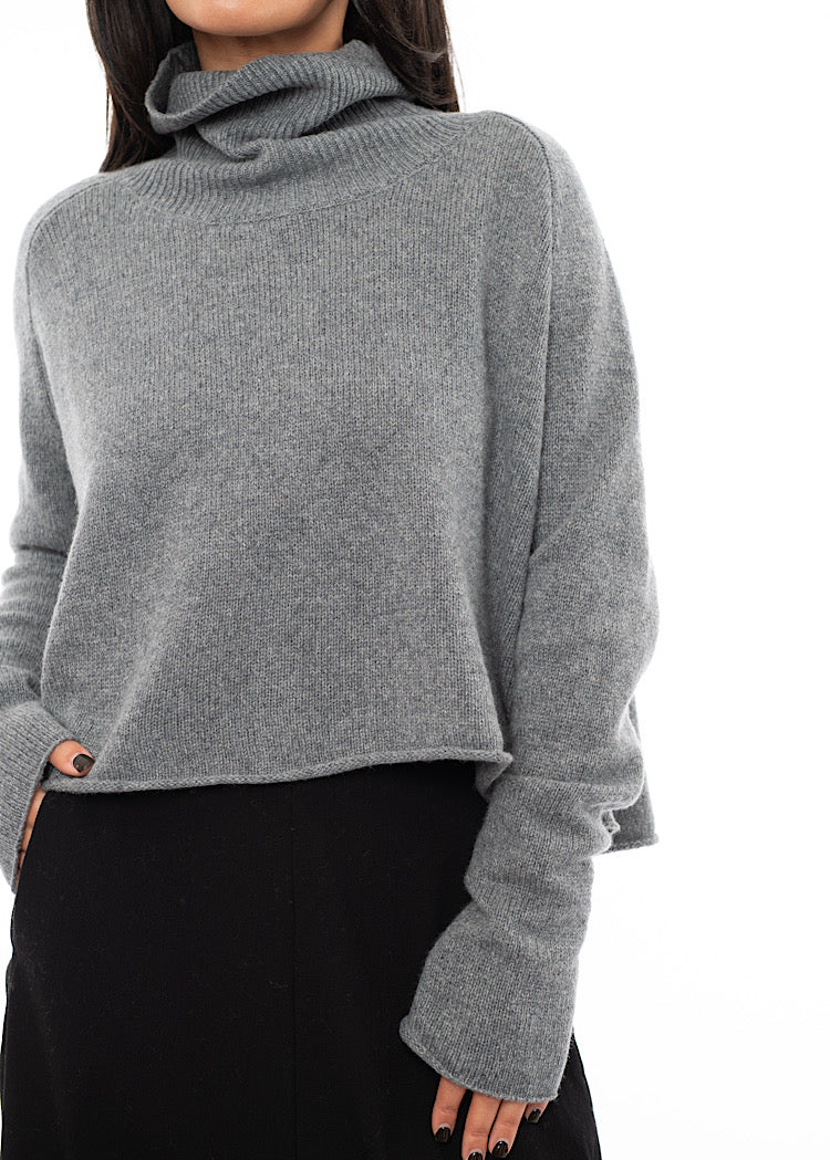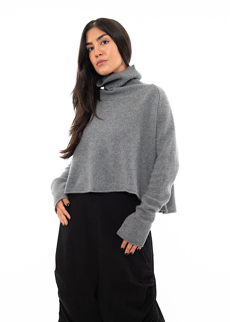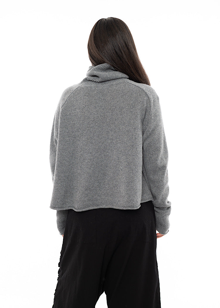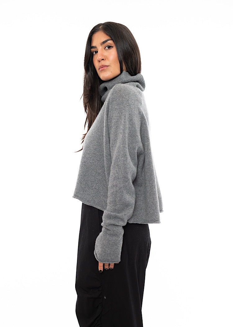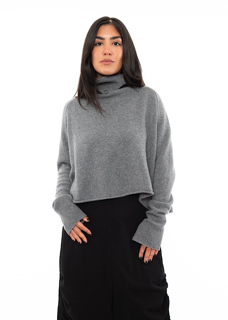 A cropped knitted pullover from RUNDHOLZ BLACK LABEL Autumn/Winter '25 crafted in a Wool-Blend Mix. This oversized knit features a slouchy high neckline and scooped hemline.