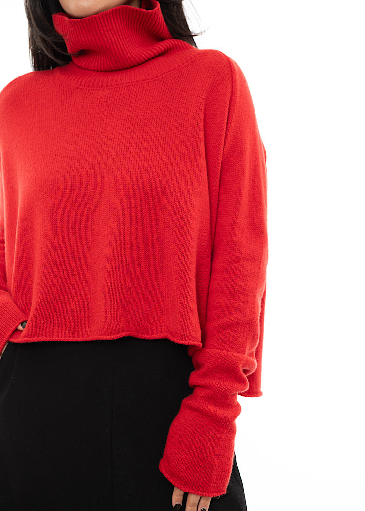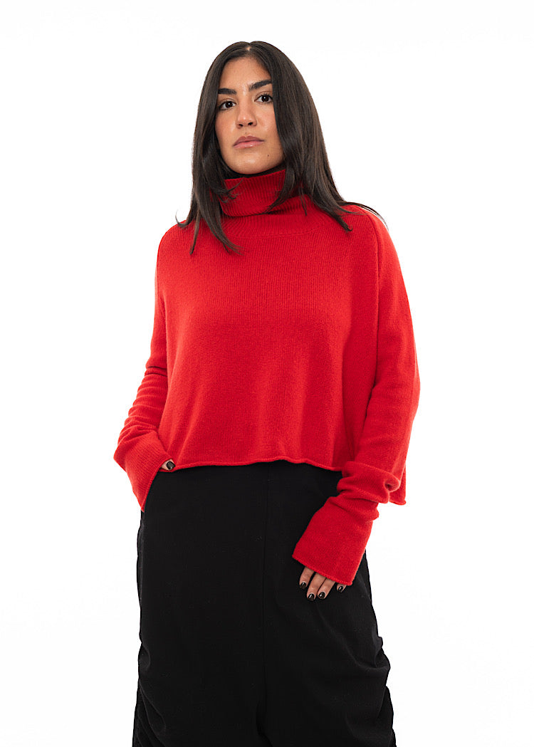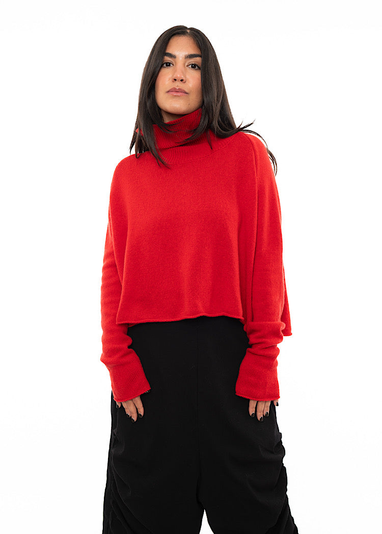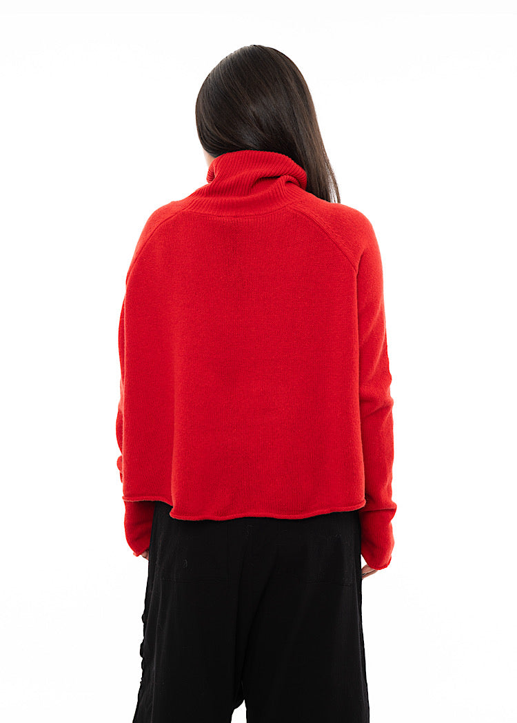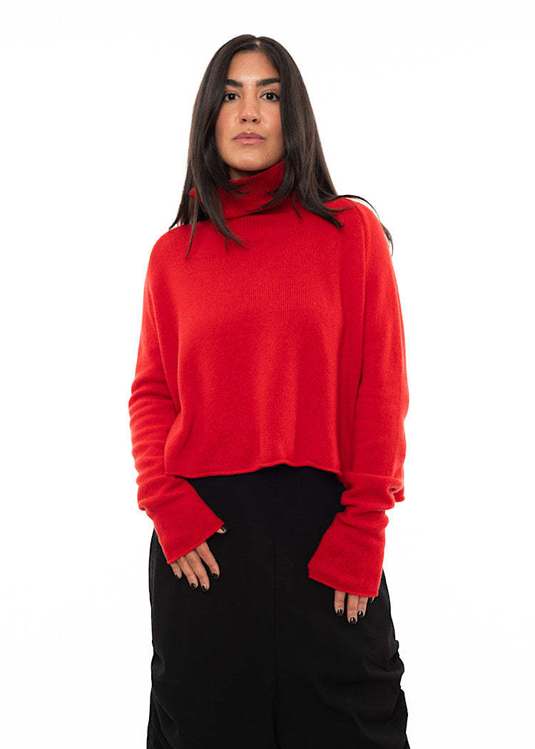 A cropped knitted pullover from RUNDHOLZ BLACK LABEL Autumn/Winter '25 crafted in a Wool-Blend Mix. This oversized knit features a slouchy high neckline and scooped hemline.