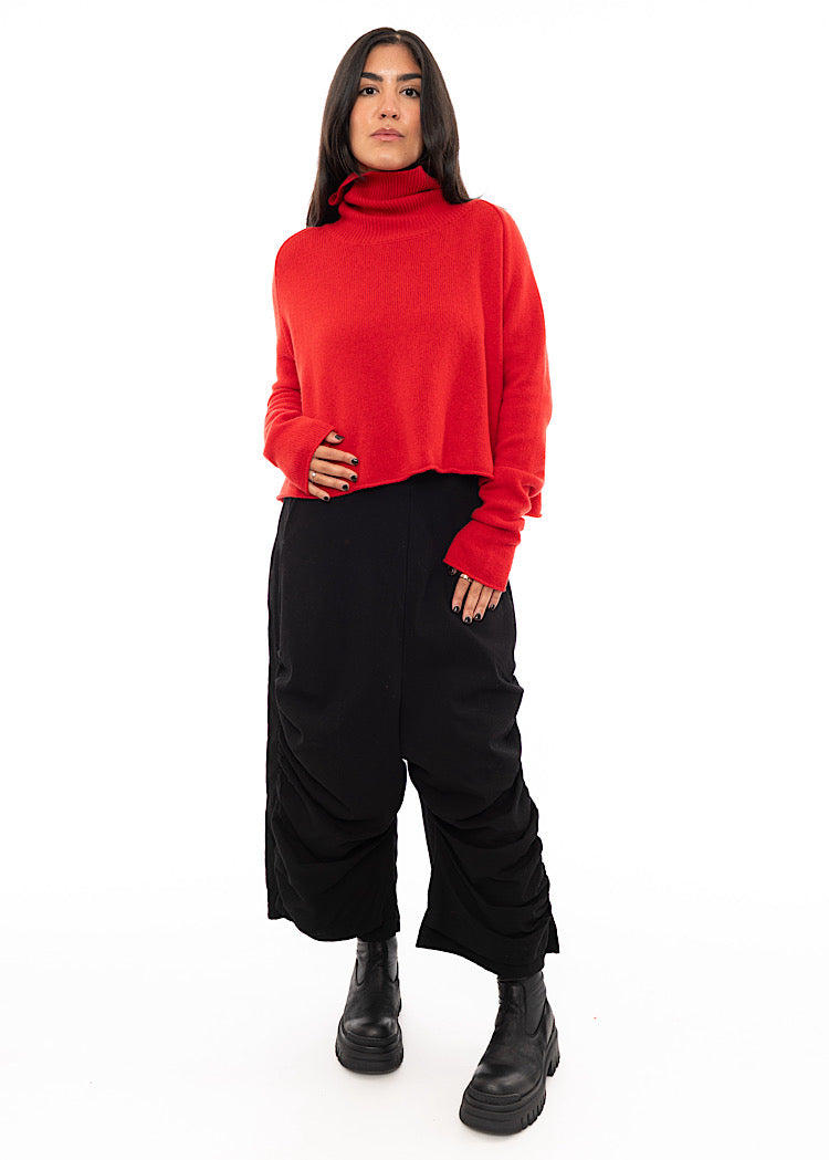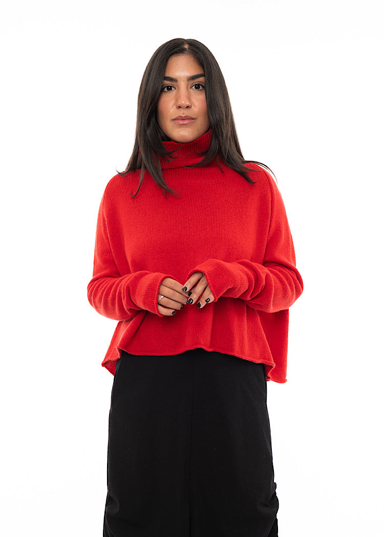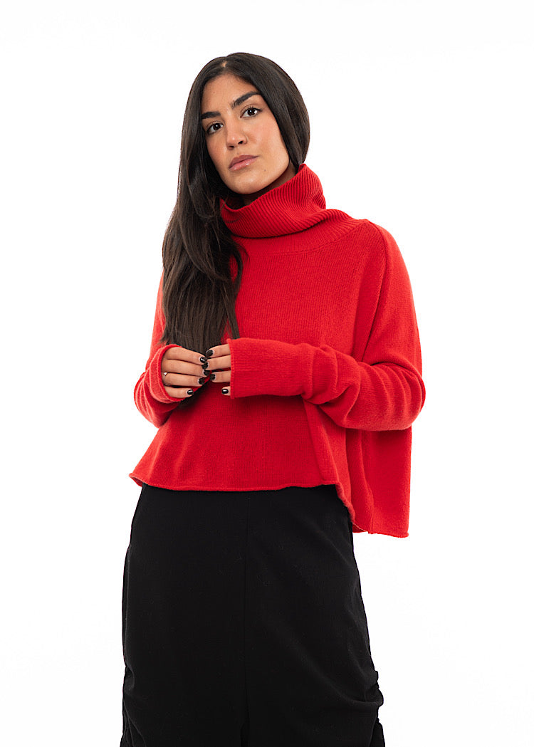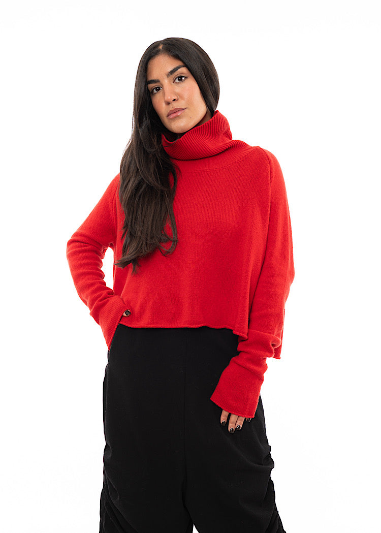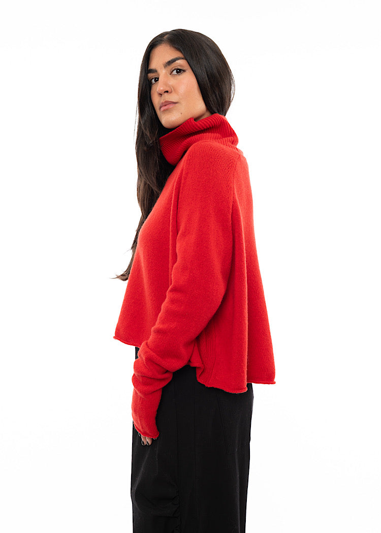 A cropped knitted pullover from RUNDHOLZ BLACK LABEL Autumn/Winter '25 crafted in a Wool-Blend Mix. This oversized knit features a slouchy high neckline and scooped hemline.