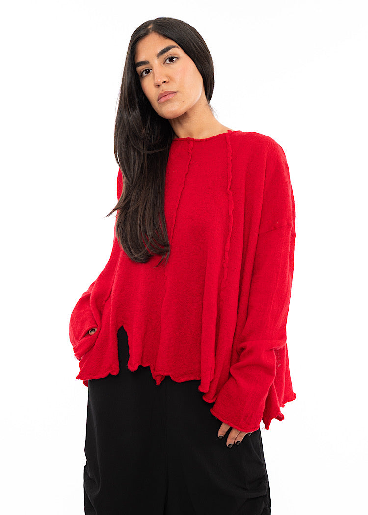EDITOR'S NOTE : The boiled Wool fabric group from the RUNDHOLZ collection is a staple every Autumn/Winter. Don't miss out on this collector's piece before it's gone. We found that this fabric group absorbs dye pigments exceptionally well, resulting in intense, vibrant colour. Style with a fitted silhouette to balance out of the oversized nature of the knit or opt for a relaxed ensemble with a drop-crotch trouser.