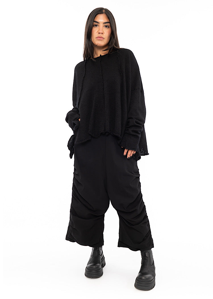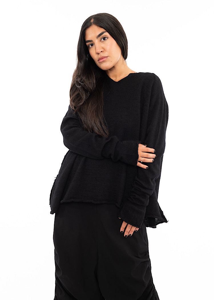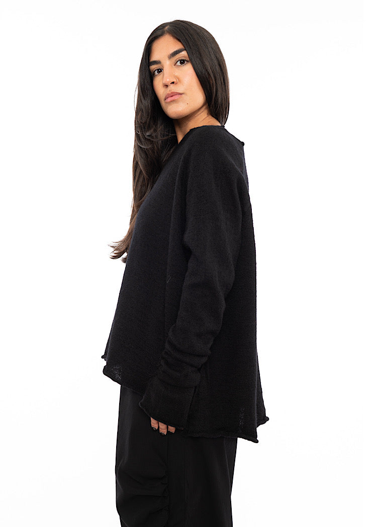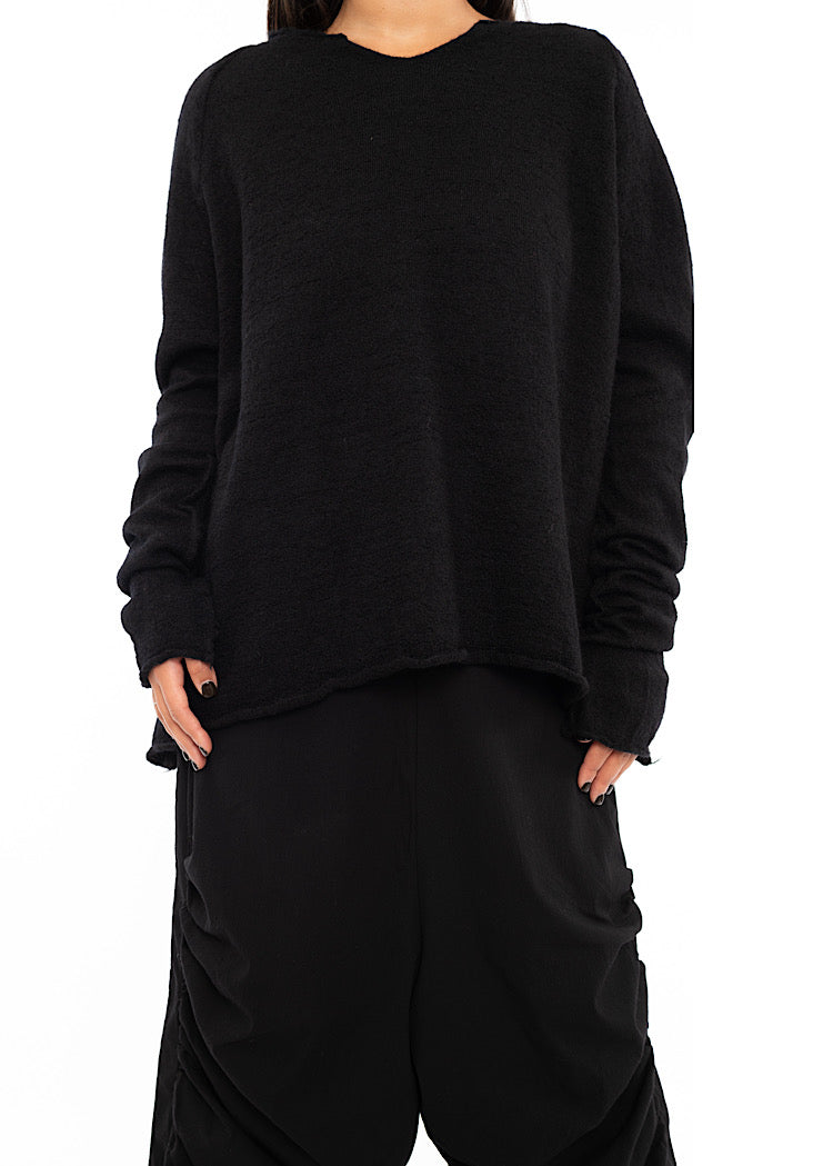 EDITOR'S NOTE : This is set to be a staple pullover from BLACK LABEL AW25. The boiled Wool fabric group from the RUNDHOLZ collection is a staple every Autumn/Winter. Don't miss out on this versatile piece before it's gone. We found that this fabric group absorbs dye pigments exceptionally well, resulting in intense, vibrant colour. Style with a fitted silhouette to balance out of the oversized nature of the knit or opt for an relaxed ensemble with a drop-crotch trouser.