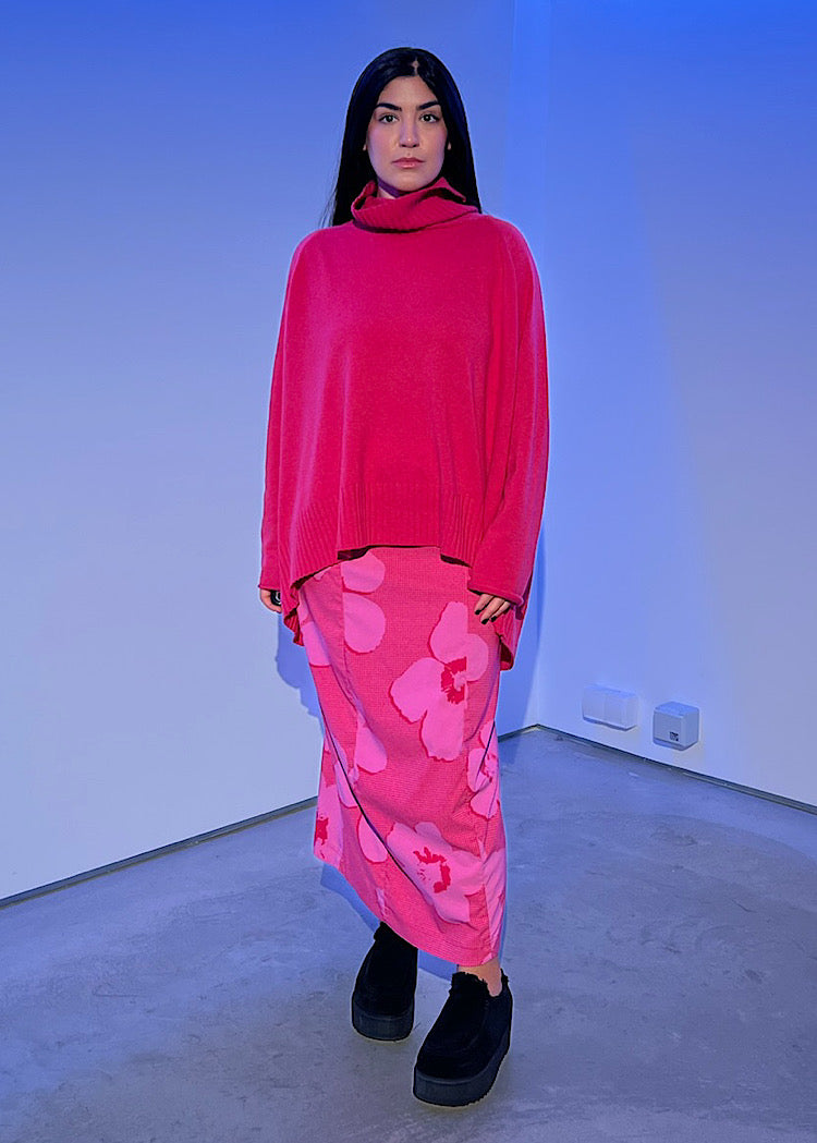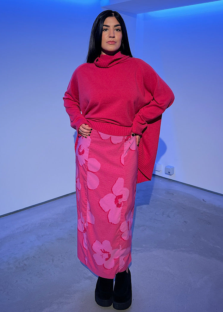 A staple techno skirt with signature RUNDHOLZ BLACK LABEL shaping, in a comfortable stretch Viscose-Mix material and printed with oversized florals inspired by Andy Warhol’s iconic flower prints. The skirt is a pull on style with stretch to enable a comfortable fit.