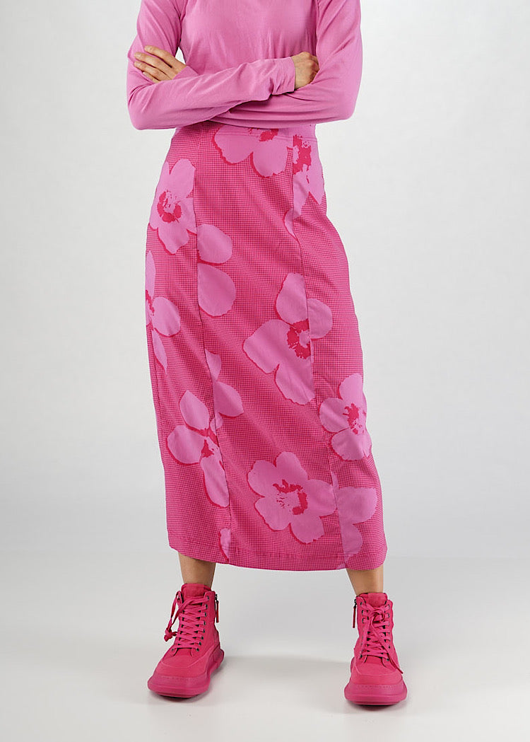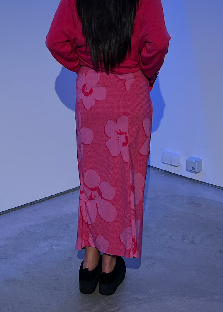 EDITOR'S NOTE : An essential building block for your Autumn/Winter wardrobe, this piece comes in a wide range of colours and prints this season. Introduce this season's motif, inspired in part by Andy Warhol's Flowers with this monochrome techno skirt. Style it with an oversized knit for a casual, understated RUNDHOLZ look, or pair it with a fitted jacket to dress it up. Finish with chunky Lofina boots for a striking contrast to the fitted silhouette. A versatile all-rounder, perfect for both seasoned RUNDHOLZ fans and newcomers to the brand alike.