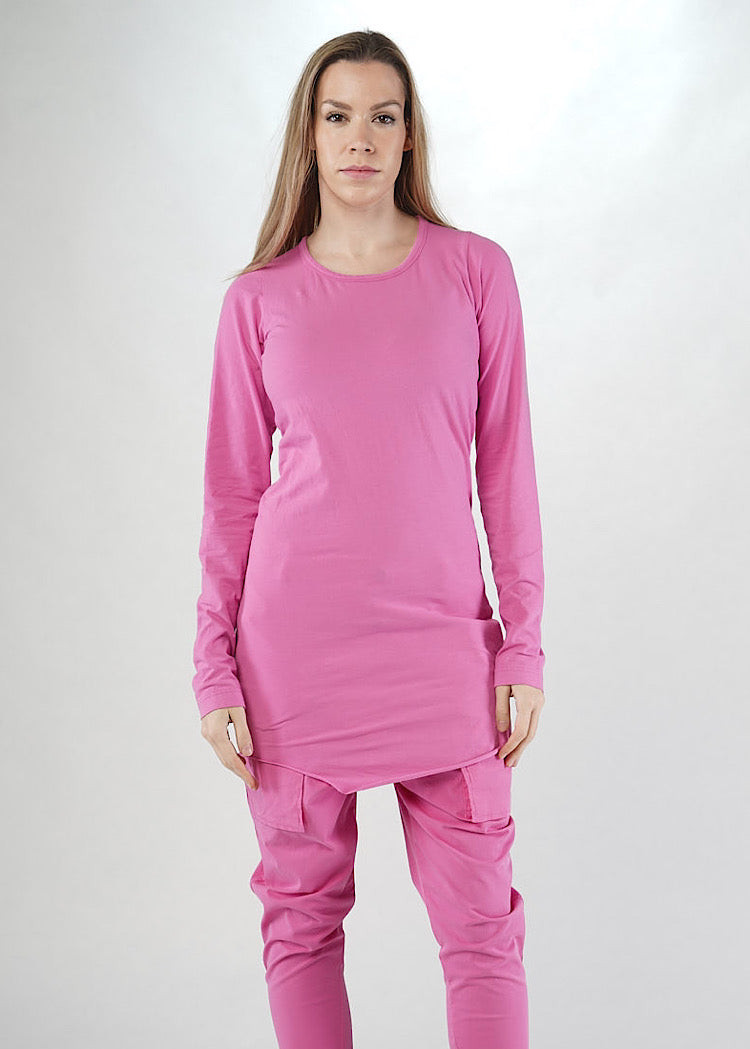 A stretch-fit T-Shirt from RUNDHOLZ BLACK LABEL. Features include a round neckline, long length sleeves and a curved hemline. Finished with rolled hemlines.