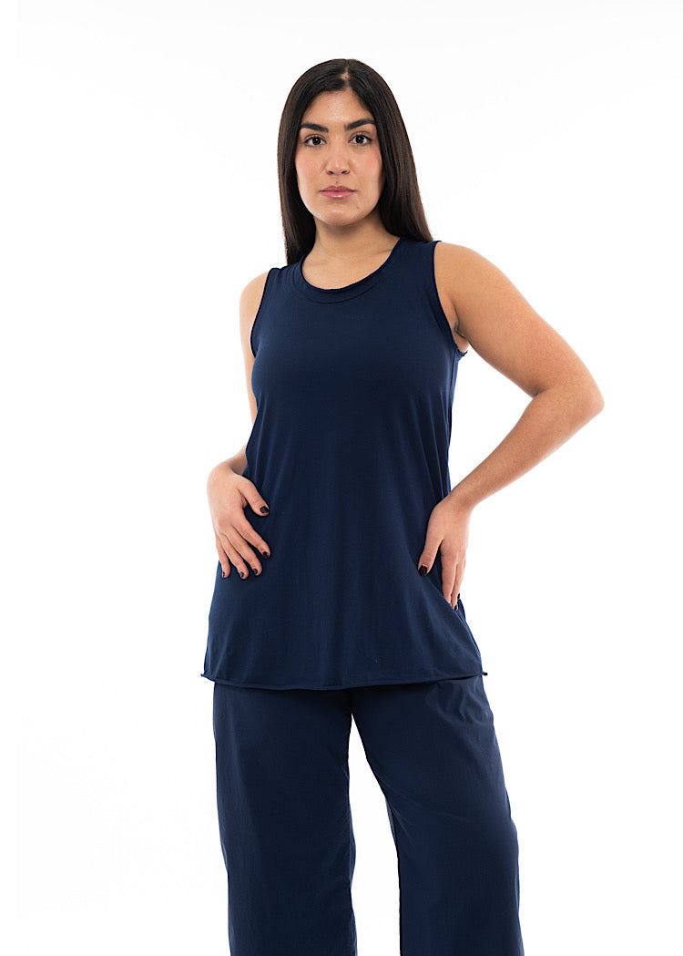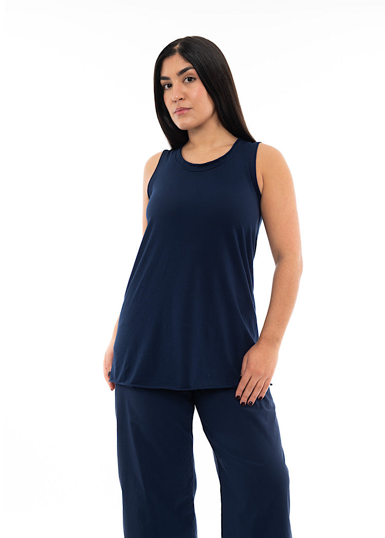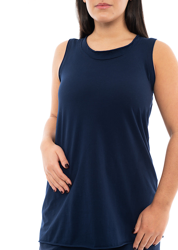 A lightweight, sleeveless basic from RUNDHOLZ BLACK LABEL. Features include a round neckline and rolled edges. The perfect layering piece for any outfit.