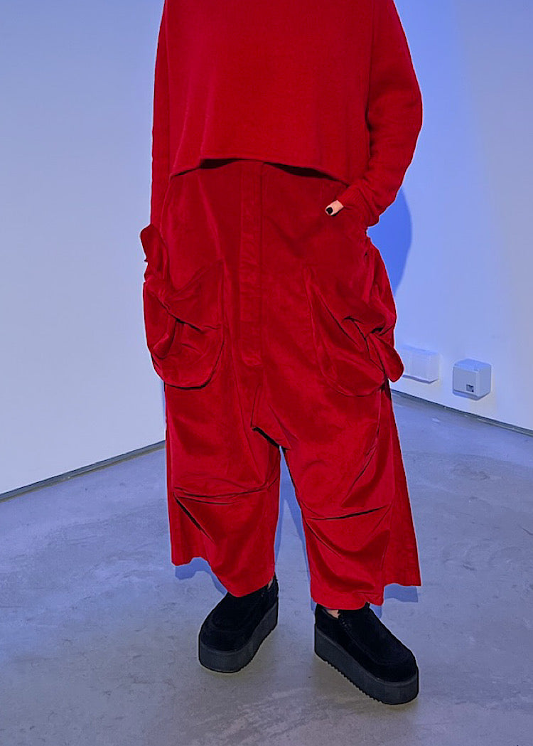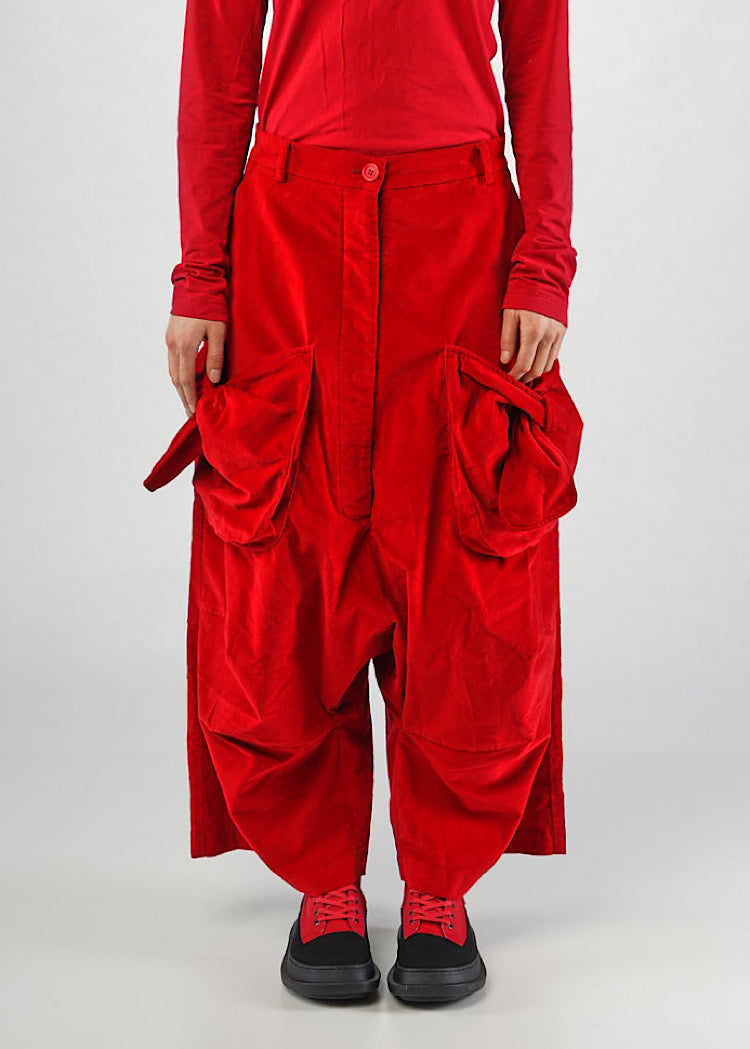 EDITOR'S NOTE : Velvet doesn’t have to mean formal. These drop-crotch trousers from RUNDHOLZ BLACK LABEL prove just that - striking in shape, colour and texture yet incredibly easy to wear. We love them styled with a soft knit or relaxed pullover for an off-duty winter look.