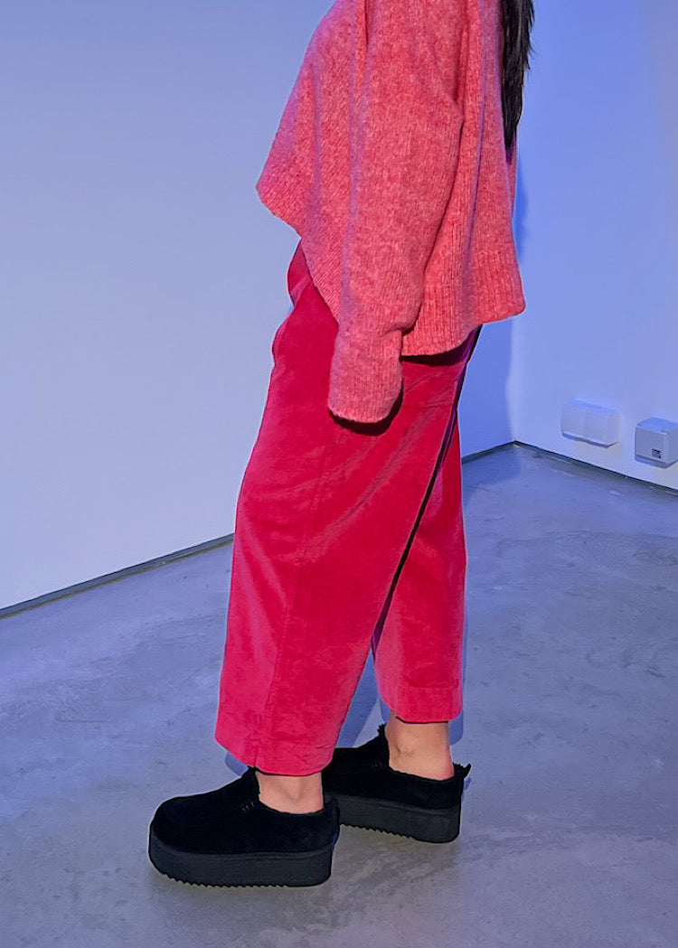 EDITOR'S NOTE : If drop-crotch styles aren’t your thing, this is the velvet trouser for you. With a more traditional straight-leg cut and a clean, cropped finish, it offers all the impact without the exaggerated silhouette. It’s a great option for RUNDHOLZ collector's who love the richness of velvet but prefer a slightly more classic shape.