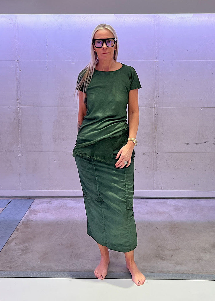 EDITOR'S NOTE : This pull-on style fitted skirt from RUNDHOLZ DIP, available in the colours of the season, has become a House of Valerie cult favourite over the years. An essential piece for building your Autumn/Winter wardrobe, it offers endless styling possibilities. Complete the look with chunky Lofina boots and a fitted jacket for a bold, modern silhouette or opt for a more textured finish with one of this season's textured Wool jackets or Racoon knits.