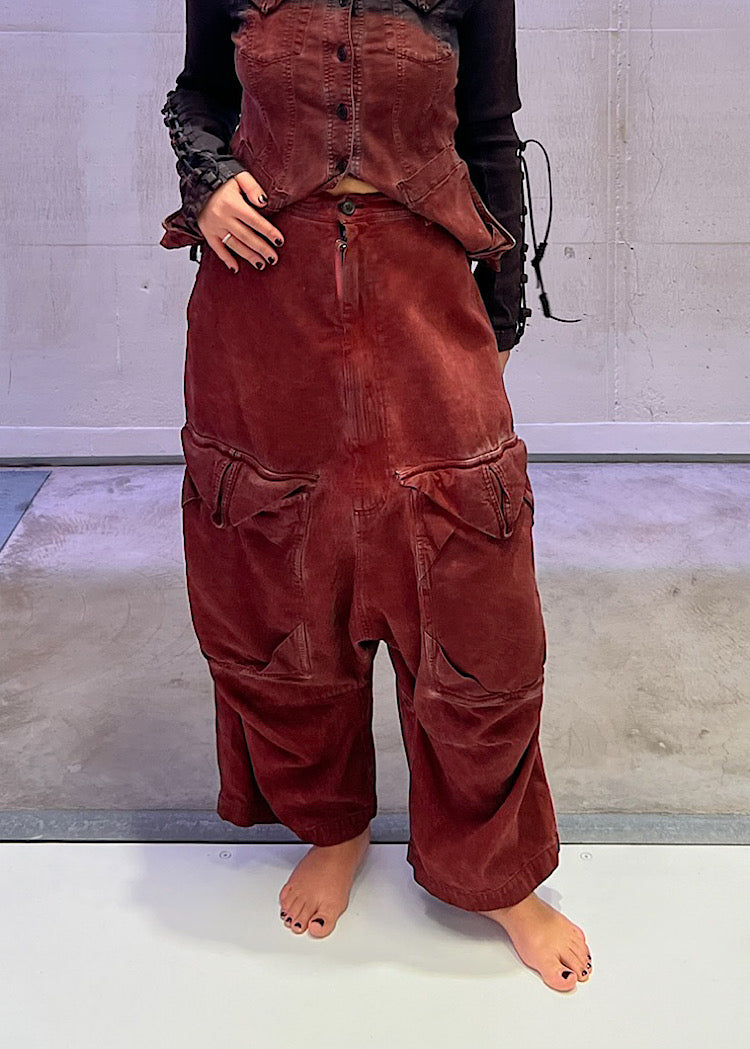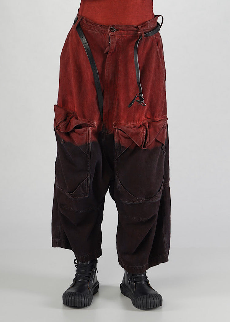 A denim drop-crotch trouser from RUNDHOLZ DIP AW25, crafted from soft distressed-dyed Cotton with a washed vintage finish. Featuring oversized pockets, detailed with sculptural folds. Finished with classic Denim Jeans styling, including a fixed waistband, belt loops, inset side pockets and a zip fastening placket.