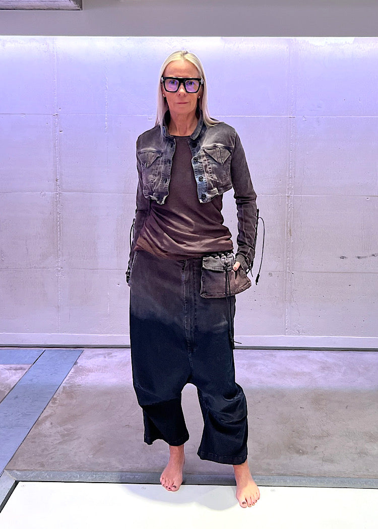 EDITOR'S NOTE : This season, denim is reimagined through the nostalgic lens of RUNDHOLZ DIP’s AW25 collection. Classic stone-washed palettes take on new life with faded tones and vintage-inspired textures, echoing the sun-bleached charm of old travel postcards. This style is set to be a firm favourite amongst the House of Valerie Team. The oversized fit of the DIP trouser provides a slouchy, relaxed look to any outfit. Style with the co-ordinating denim jacket (as pictured) or with a chunky knitted pullover in a complementary colour.