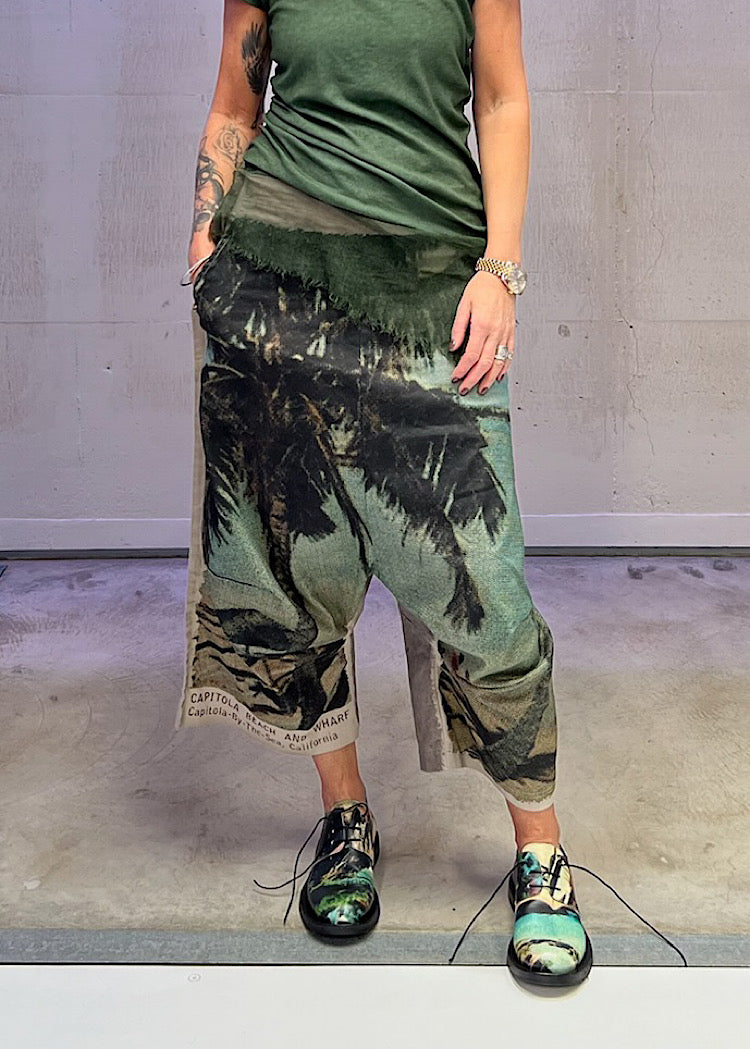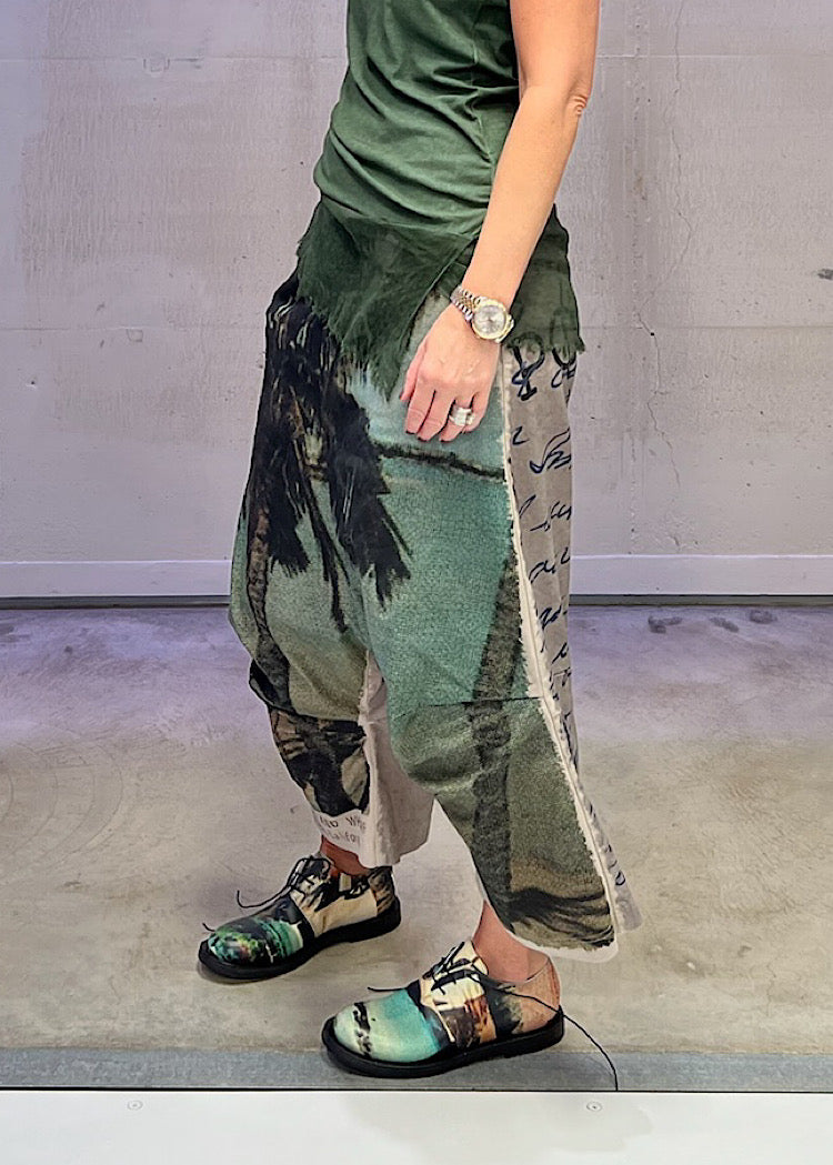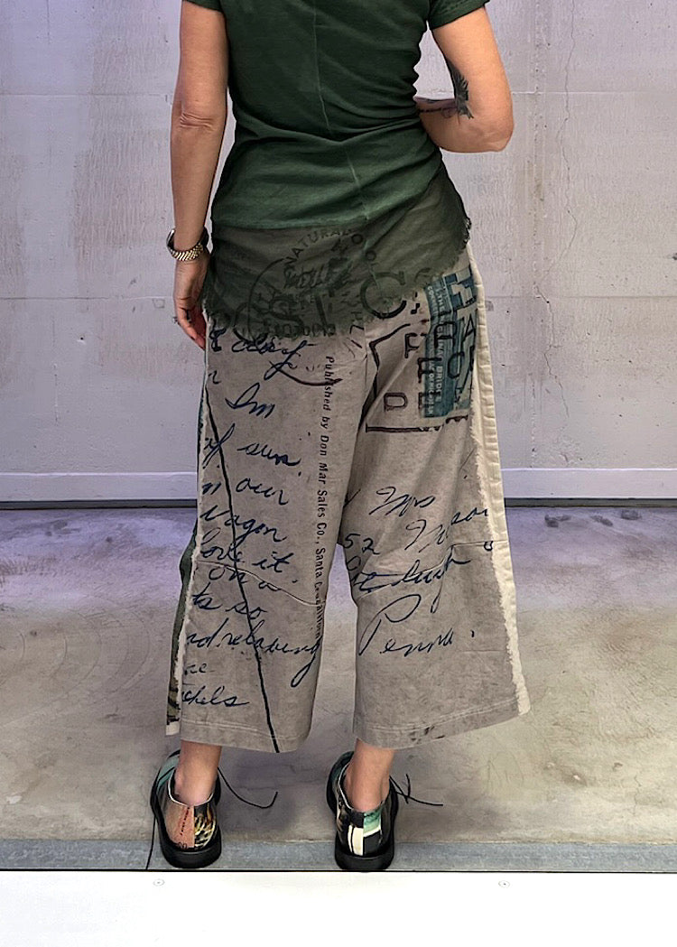 EDITOR'S NOTE : These statement trousers are a key piece in the AW25 collection - they channel the nostalgic postcard inspiration with bold, oversized graphics and handwritten details. The relaxed silhouette and unique washed finish make them a standout piece—pair with a simple top in a tonal colour block to let the print take centre stage or style with the co-ordinating fitted jacket for a statement look.
