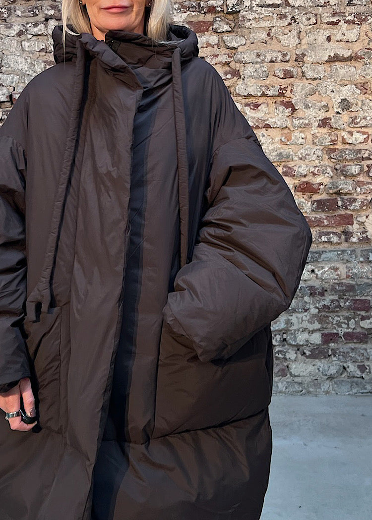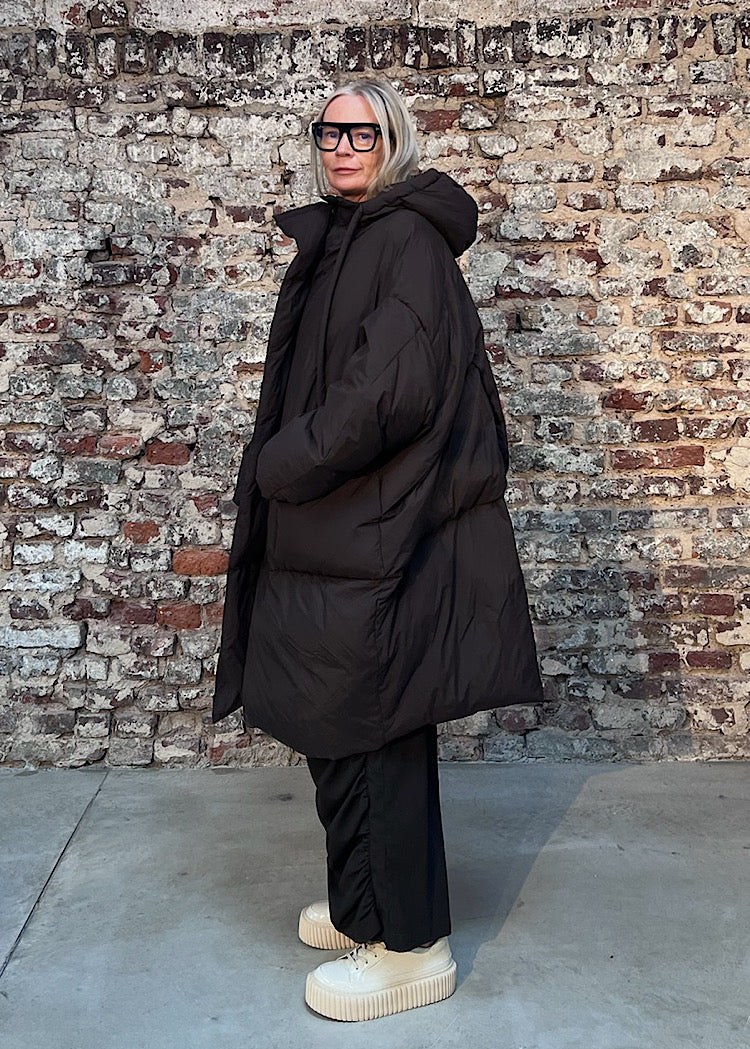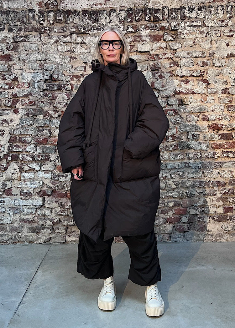 EDITOR'S NOTE : Looking for the perfect winter coat? This long-length, cocoon-style puffer from RUNDHOLZ captures the season’s bold, exaggerated silhouette, beautifully balanced by a grounded palette of Bone and Turf.