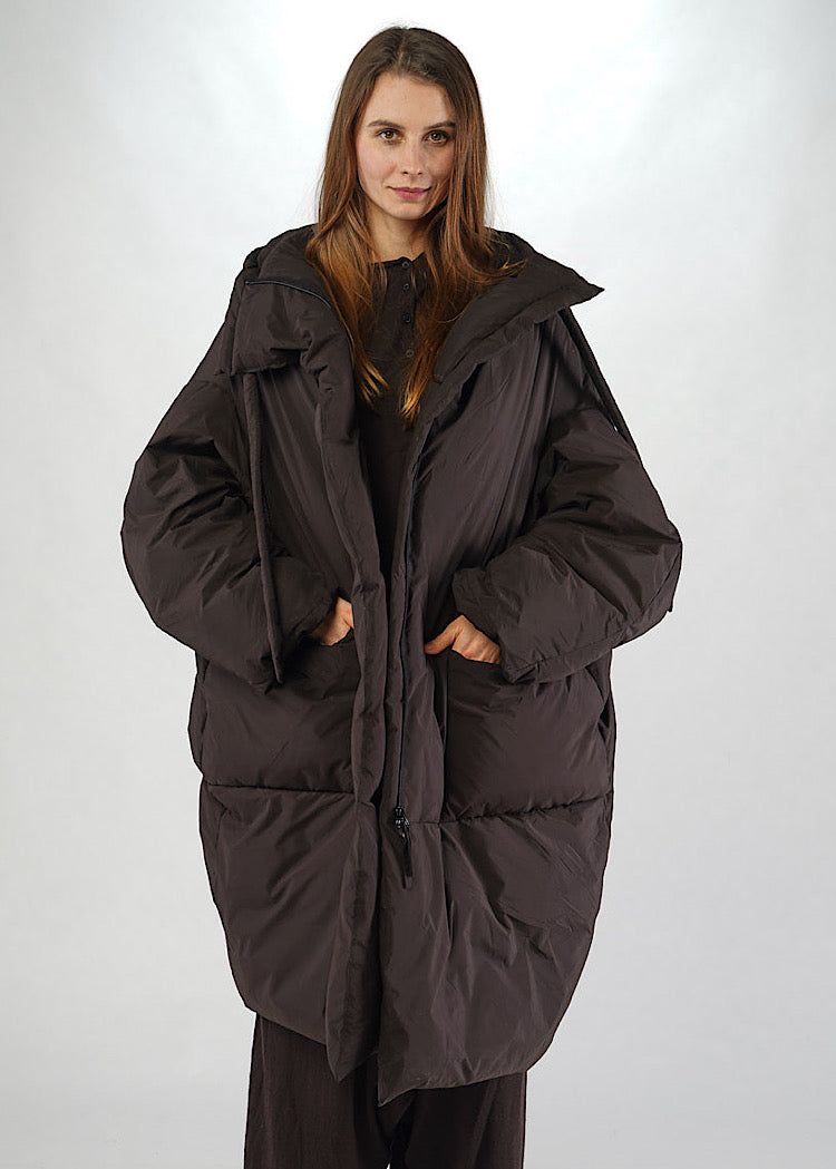 Inspired by the raw, untamed essence of monsters, the RUNDHOLZ MAINLINE Autumn/Winter '25 collection reimagines monstrosity as power, through exaggerated silhouettes, asymmetry, and sculptural layering. Otherworldly yet functional, this season Carsten Rundholz transforms the unknown into wearable form. A Goose-Down and Feather filled Puffer Coat from RUNDHOLZ MAINLINE AW25 in an exaggerated cocoon-silhouette, inspired by the collection's motif. This voluminous Coat is both lightweight and insulating, ideal for colder climates.
