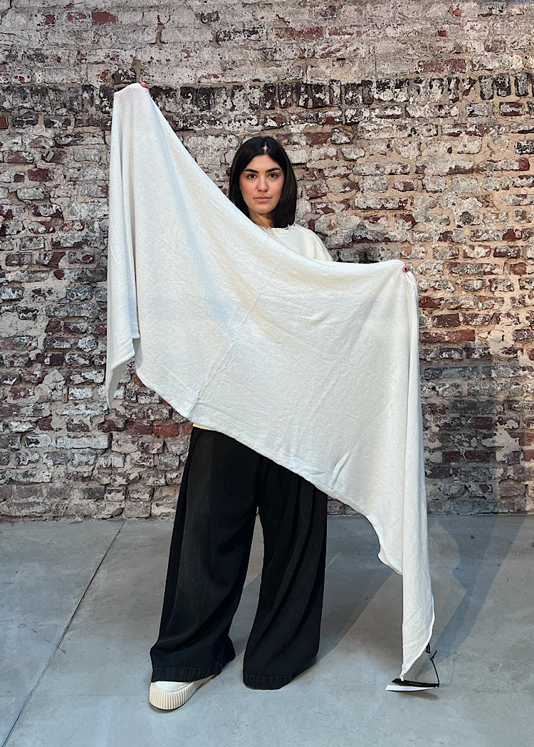 EDITOR'S NOTE : Designed with contrast ribbed trim and frayed edges, this RUNDHOLZ MAINLINE scarf echoes the focus on texture and monstrous forms seen throughout the collection. Drape, wrap, or knot - its generous length allows for versatile styling, making it an effortless layer for colder days.