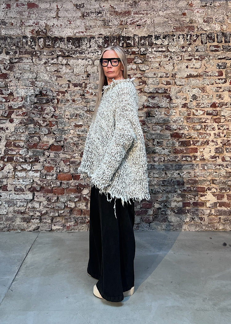 This statement piece captures everything we love about RUNDHOLZ MAINLINE: bold texture, sculptural shape, and that effortlessly undone feel. The Alpaca-Mix fabric blend is super soft and not itchy for sensitive skin. Style with a fitted techno skirt for a neat silhouette to balance the oversized fit or, alternatively, opt for a more relaxed look with a relaxed drop crotch style trouser.