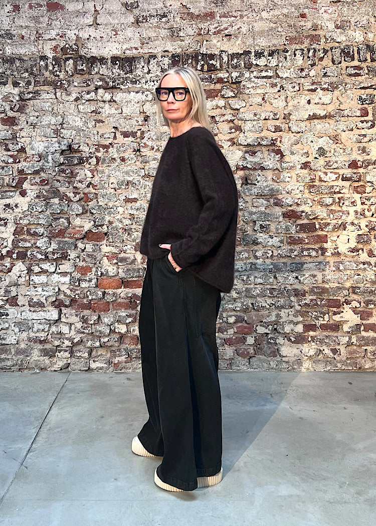 Luxuriously soft with a brushed texture, this RUNDHOLZ MAINLINE pullover is crafted from Raccoon that feels featherlight yet warm. Cut in a minimalist silhouette, it features a relaxed fit and a clean neckline, allowing the unique texture of the fabric to take centre stage.