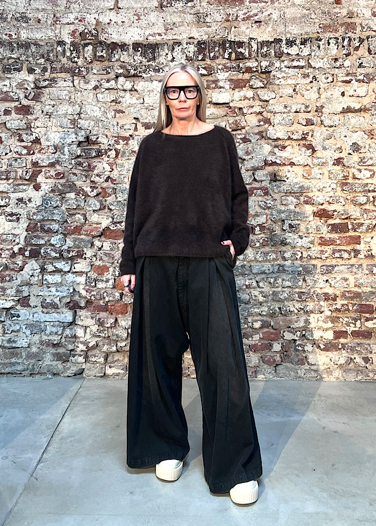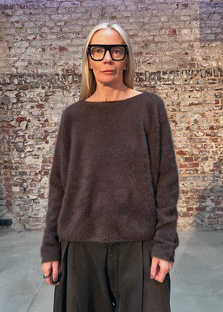 Luxuriously soft with a brushed texture, this RUNDHOLZ MAINLINE pullover is crafted from Raccoon that feels featherlight yet warm. Cut in a minimalist silhouette, it features a relaxed fit and a clean neckline, allowing the unique texture of the fabric to take centre stage.