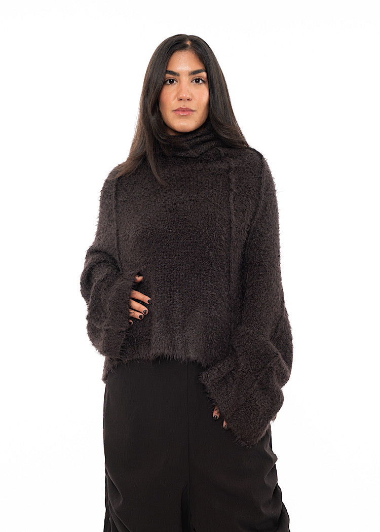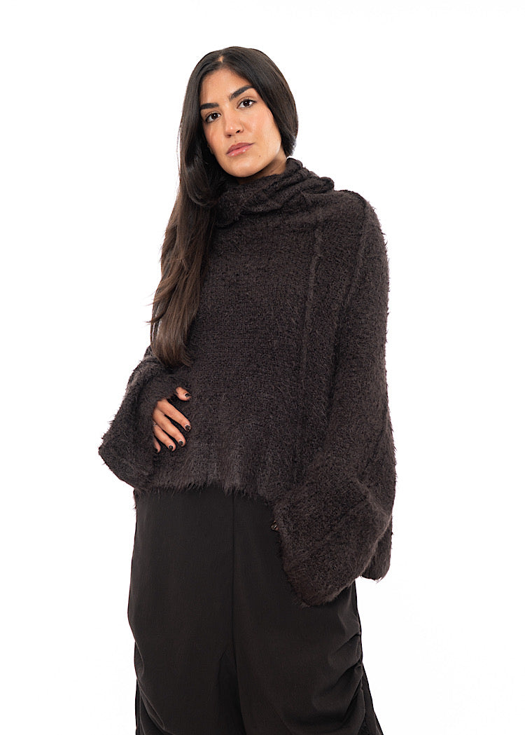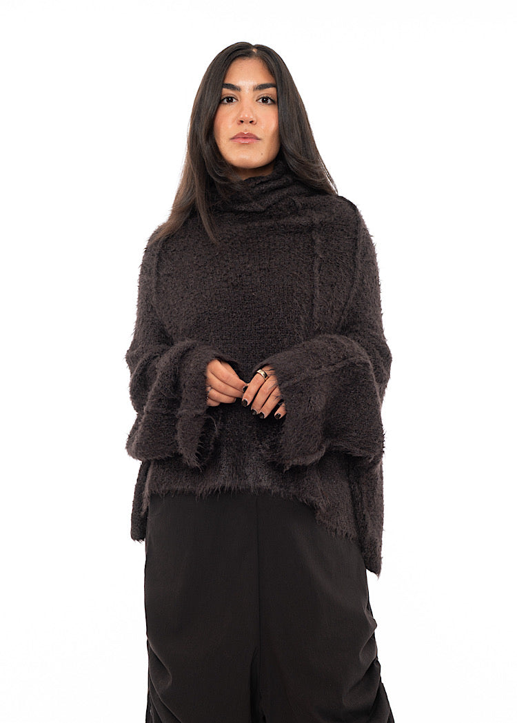 EDITOR'S NOTE : This is the kind of knit that defines a winter wardrobe. The exaggerated funnel neck and wide sleeves feel cocooning without being bulky, while the tactile texture adds dimension to even the simplest look.