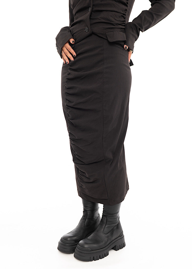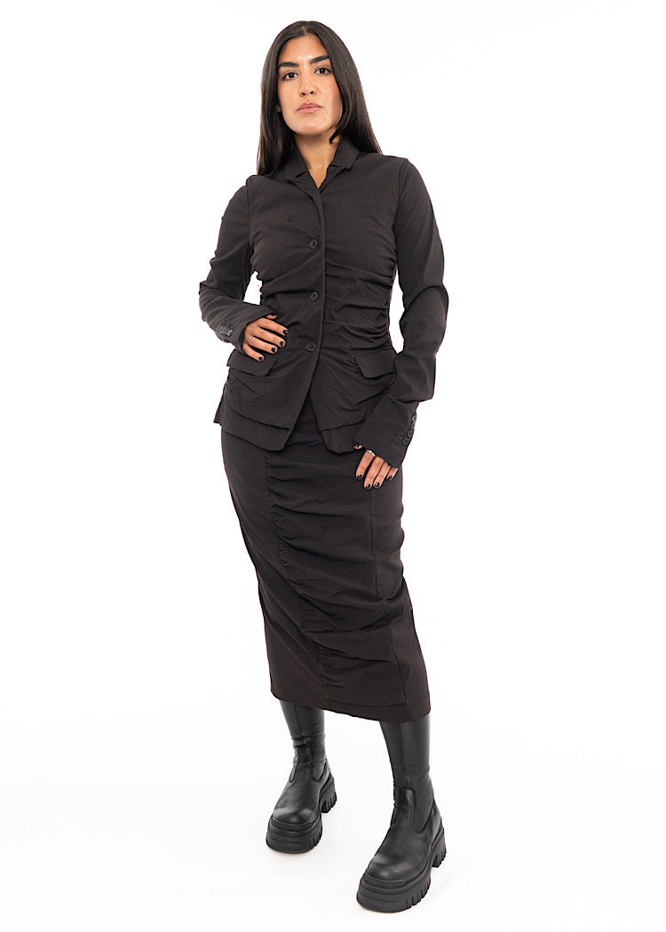 EDITOR'S NOTE : The best-selling shape is back for AW25 with a fresh new twist. A true staple for the House of Valerie team—and one of Val’s all-time favourite silhouettes. Style with the co-ordinating ruched fitted jacket for a suited look or contrast with an oversized pullover and platform Lofina boots.
