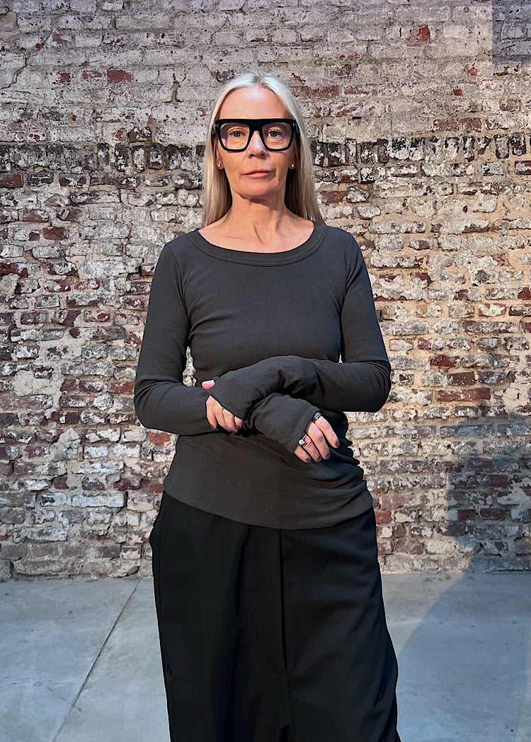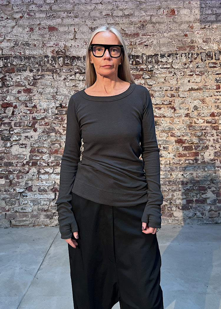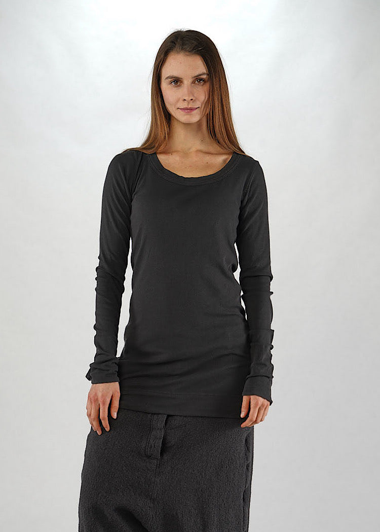 A staple, long sleeved T-Shirt from RUNDHOLZ MAINLINE Autumn/Winter '25. Features a rounded neckline, a scooped hemline and ribbed neckline and hemline. Finished with an attached cuff detail on the sleeve.